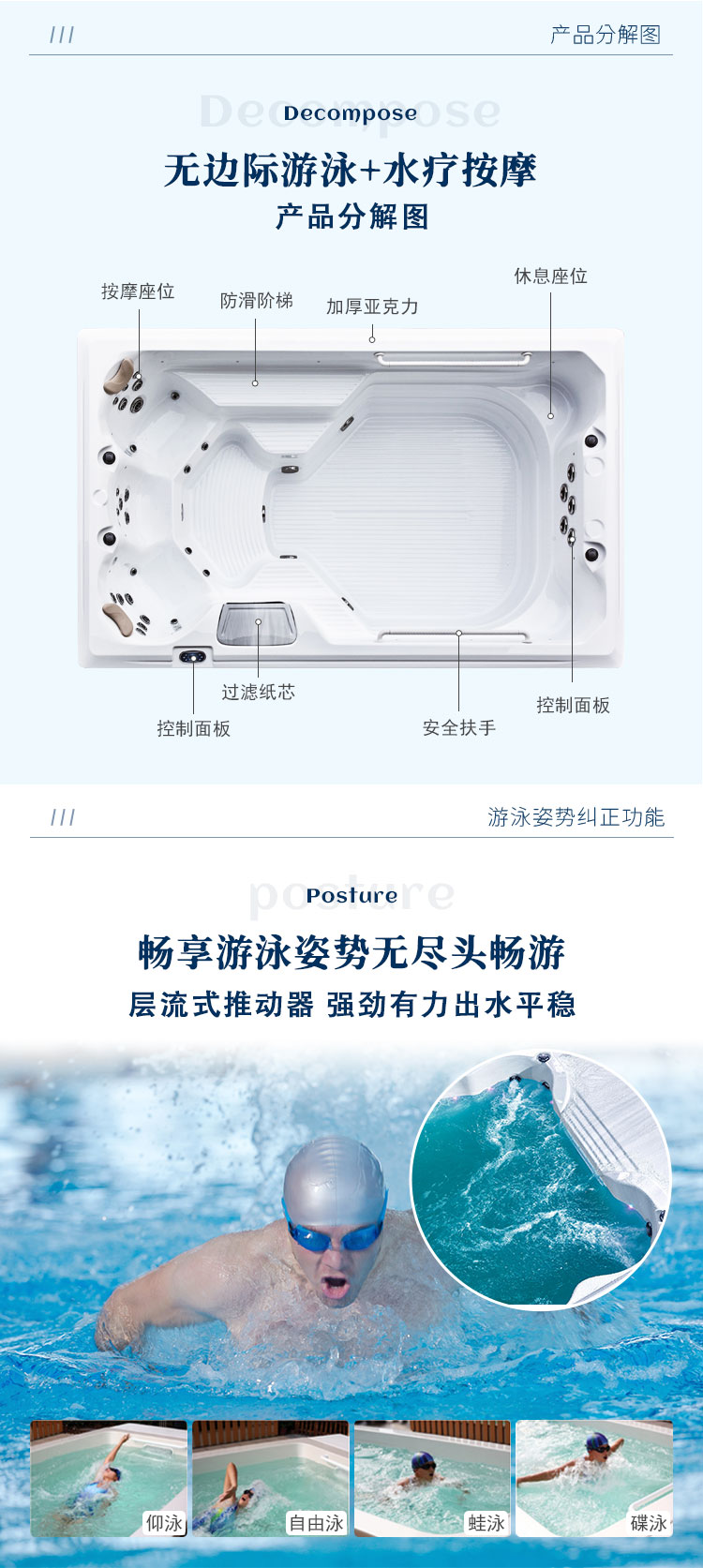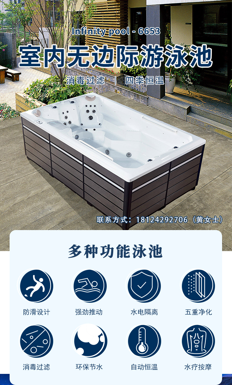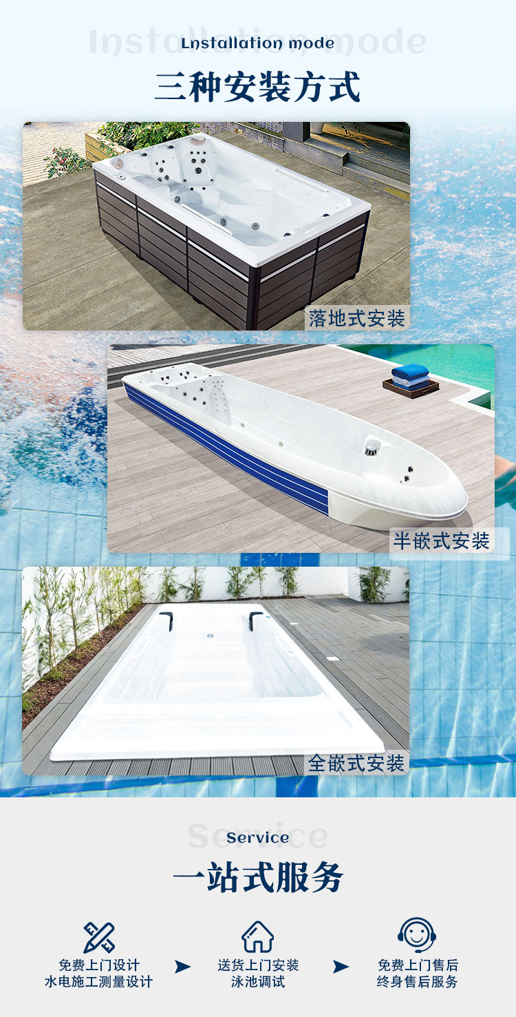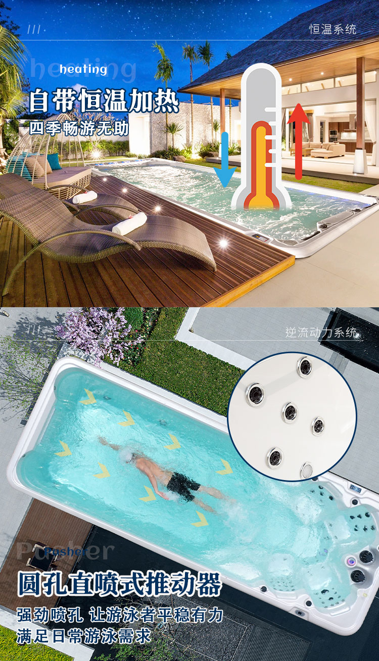私人别墅庭院家用无边际游泳池智能恒温加热运动冲浪大型循环逆流