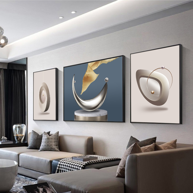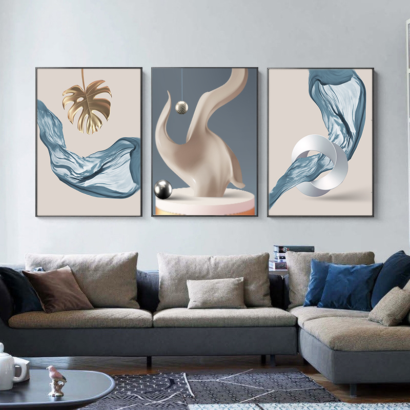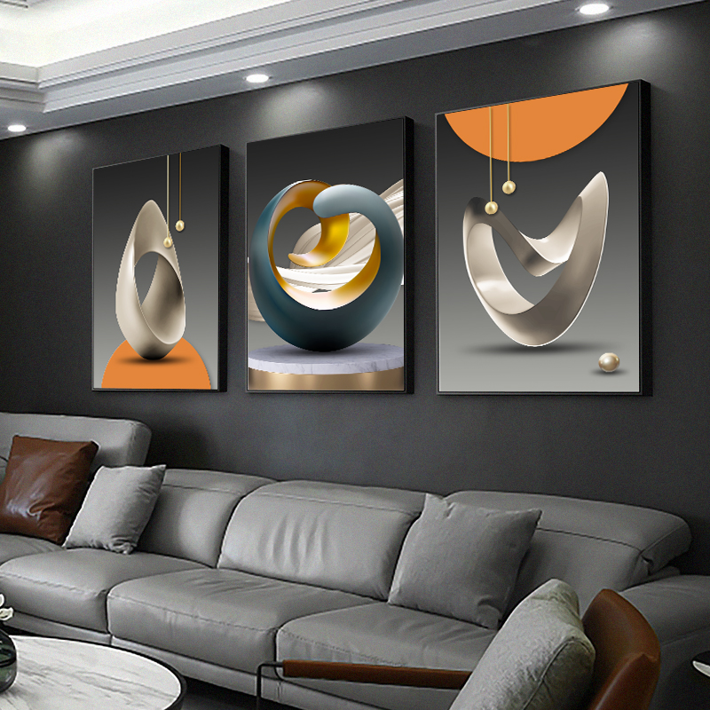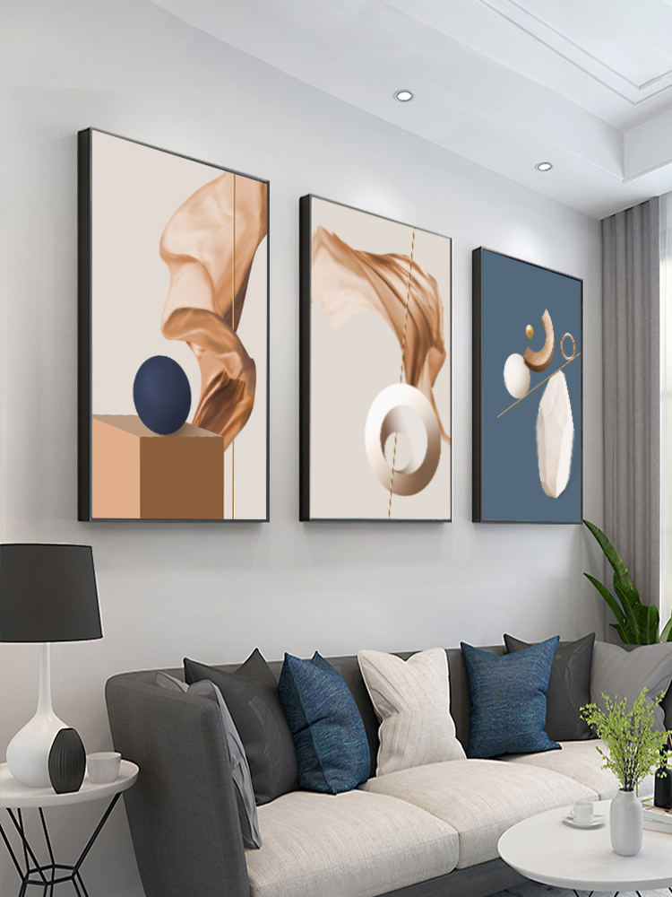 北欧客厅装饰画现代简约沙发背景墙挂画轻奢大气现代餐厅三联壁画