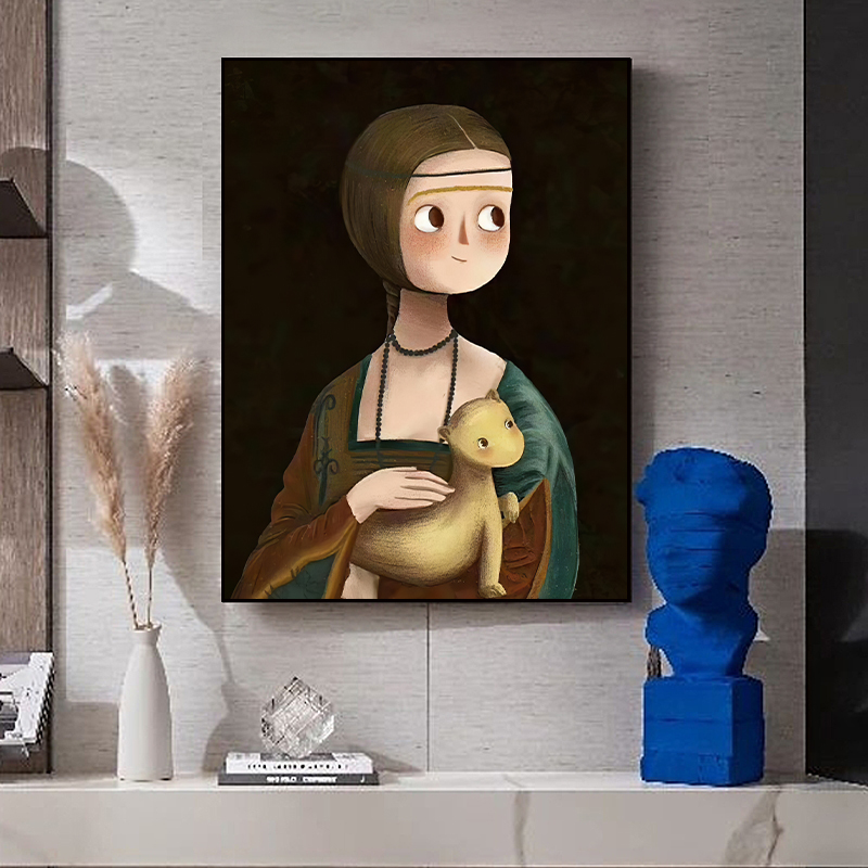 客厅沙发背景墙新款恶搞世界名画戴珍珠耳环的少女艺术创意装饰画