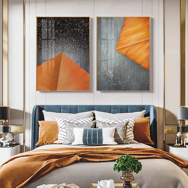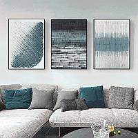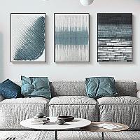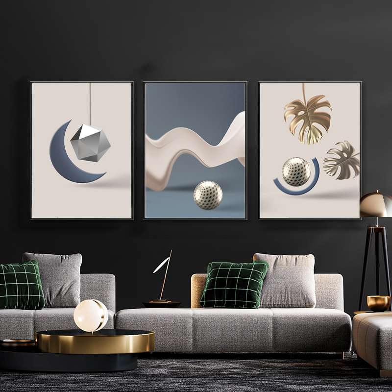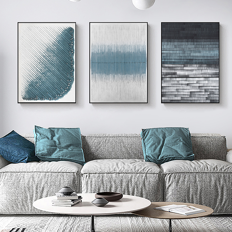 代简约蓝色几何抽象客厅装饰画三联挂画极简壁画艺术墙画