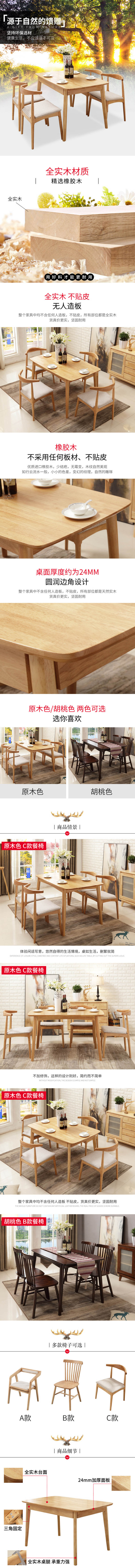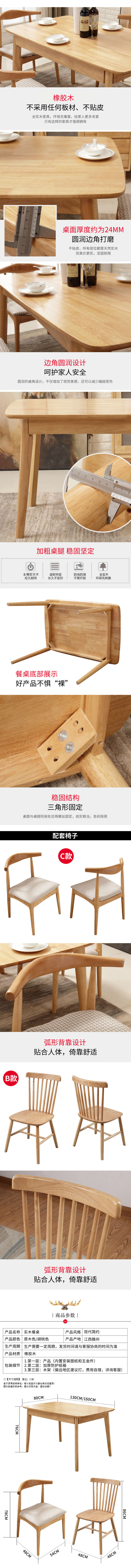 全实木餐桌椅组合北欧风白蜡木原木深胡桃色实木椅(1500*900*760mm)