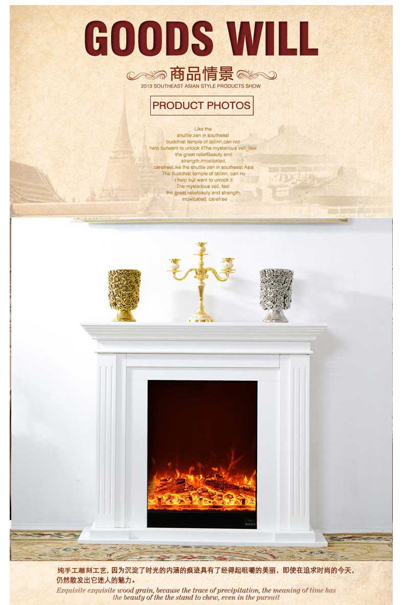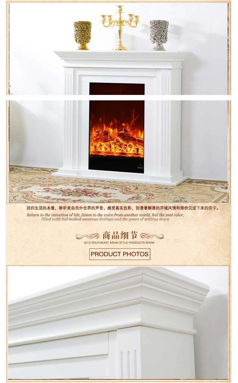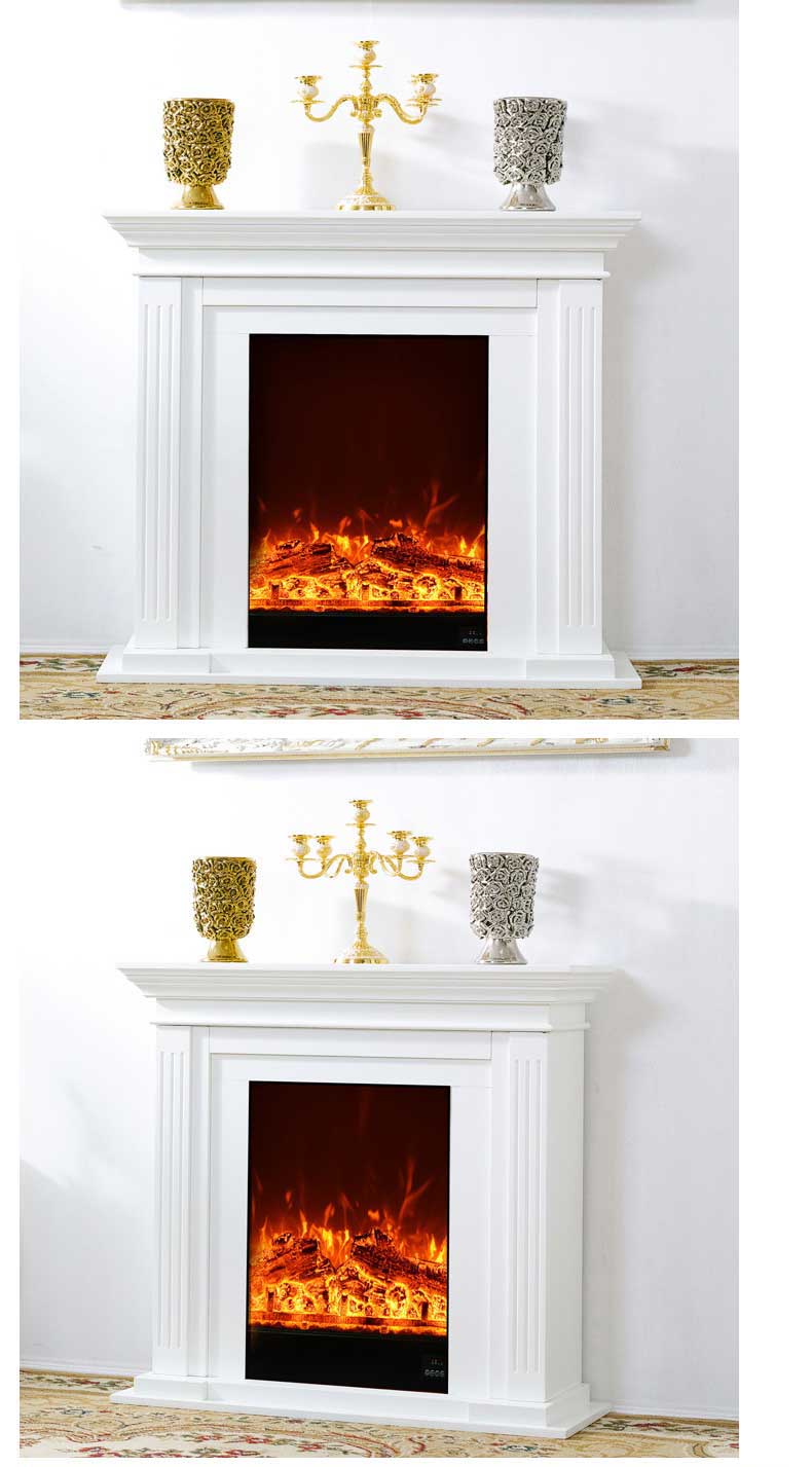 欧式简约实木壁炉 白色装饰柜客厅电壁炉仿真火芯 美式壁炉架1米