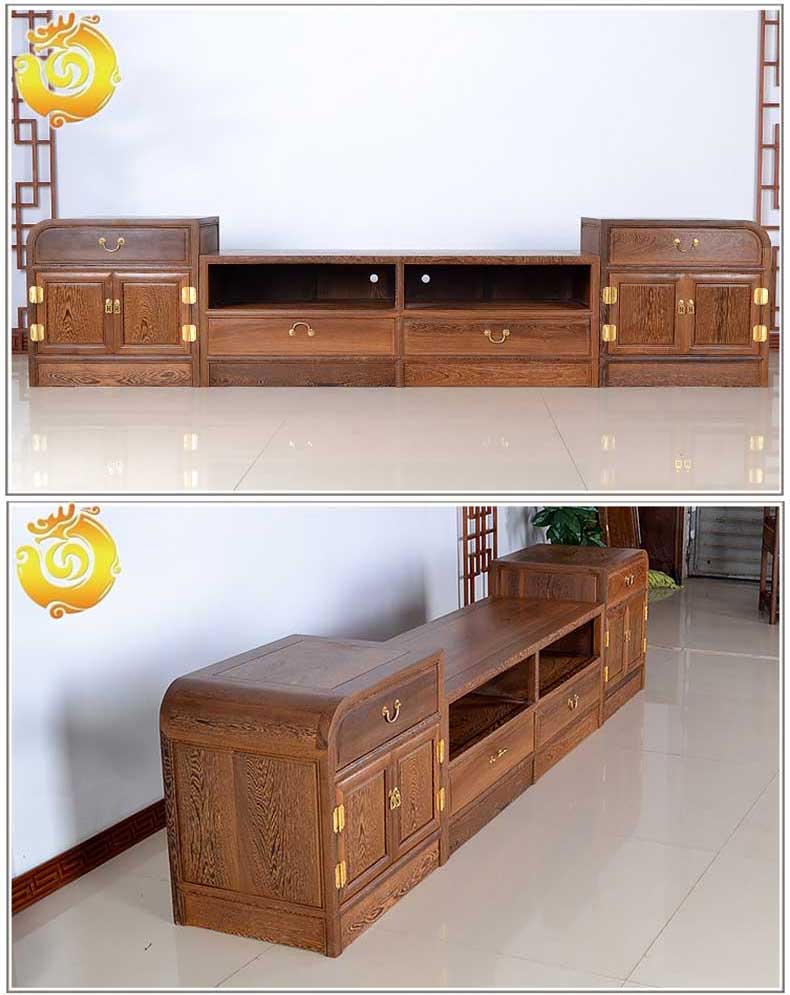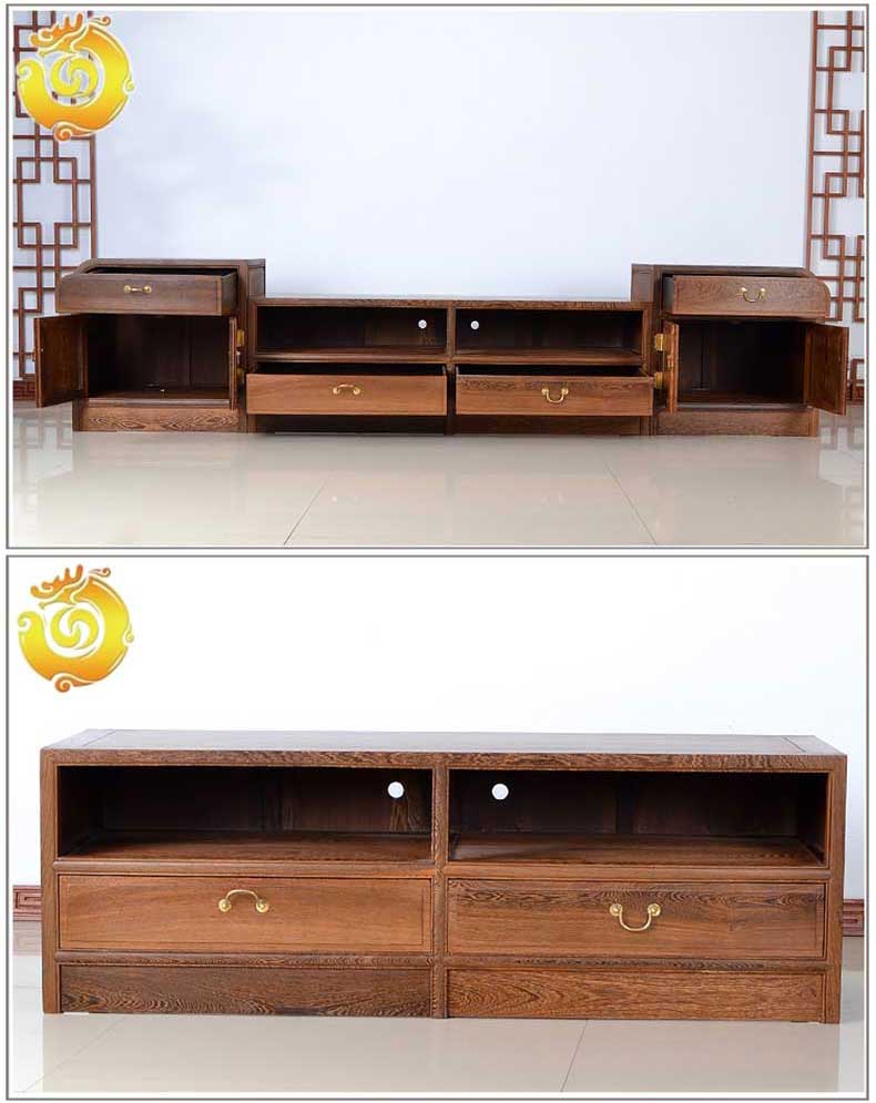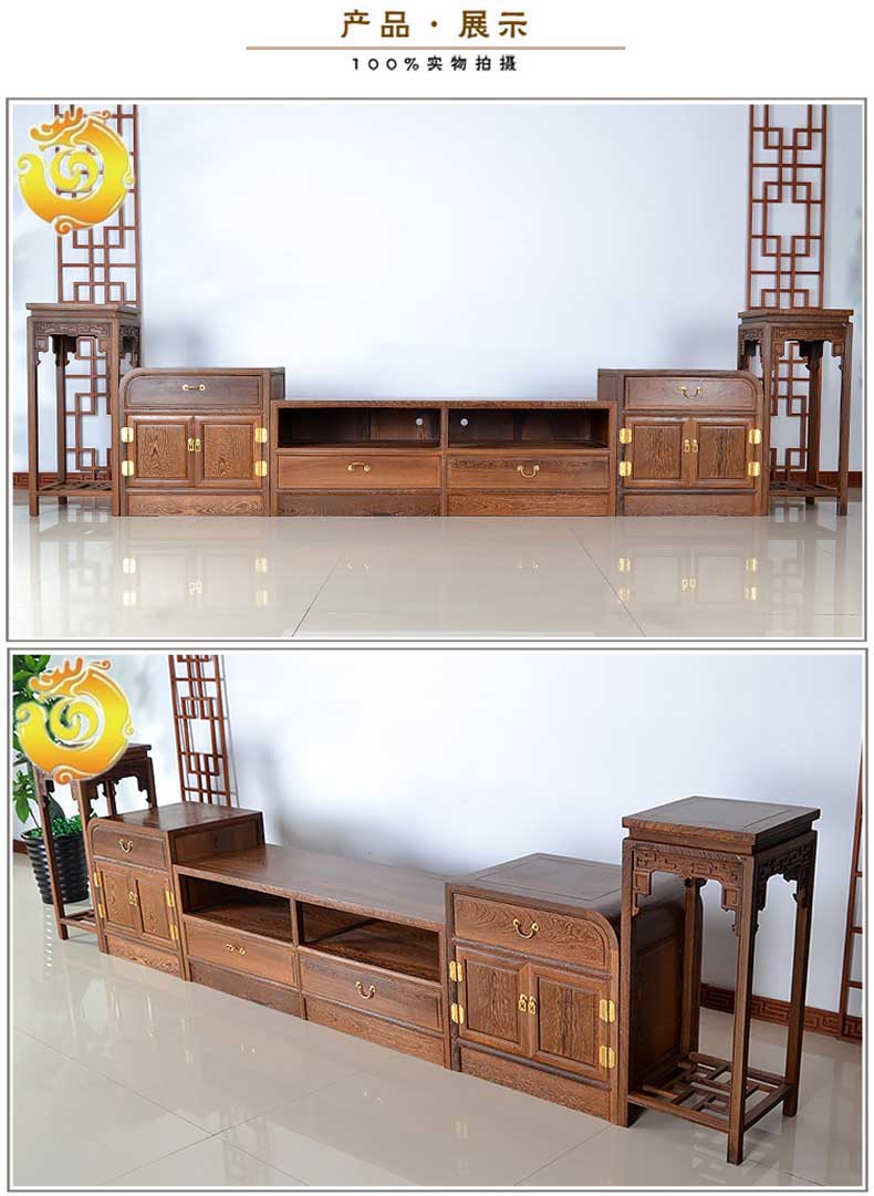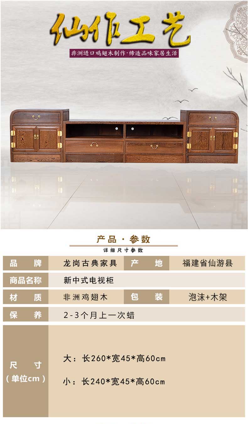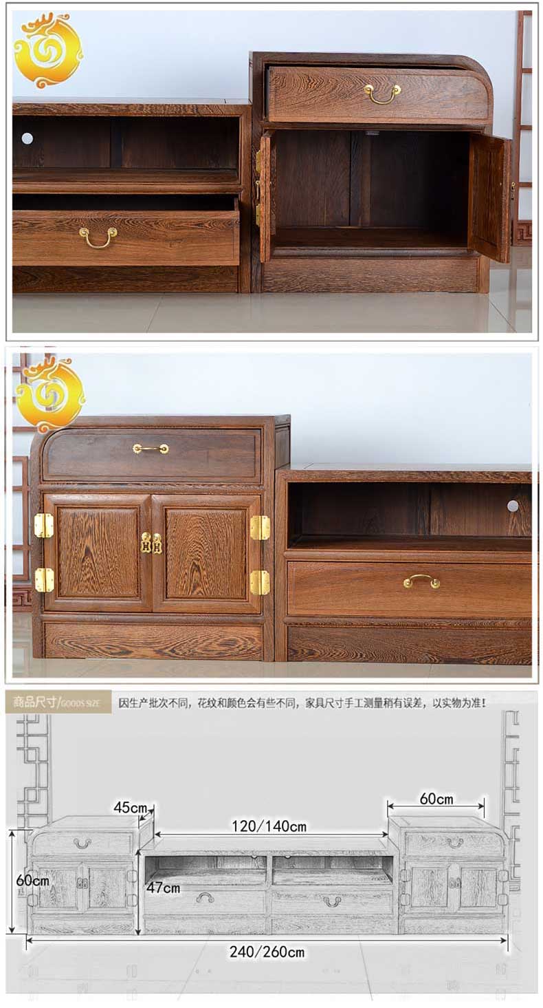 红木家具新中式鸡翅木电视柜简约小户型 实木矮柜地柜 电视墙柜(260*45*60)