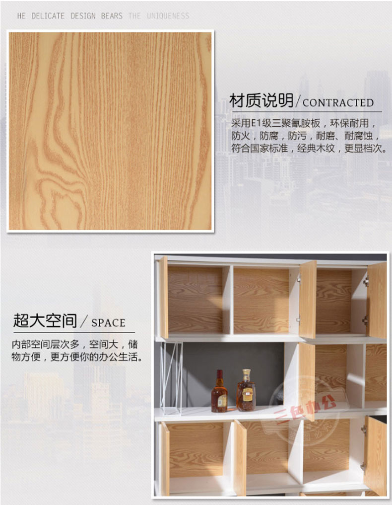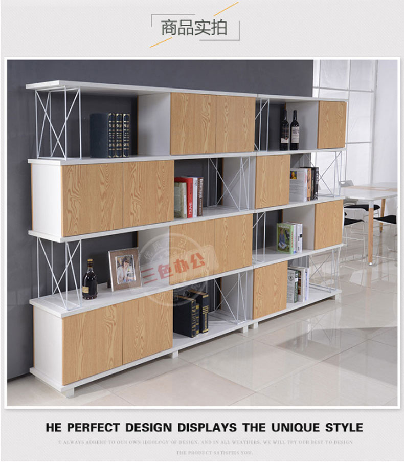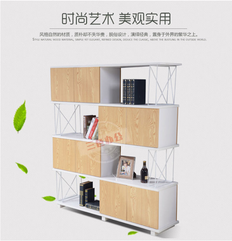 木质文件柜办公矮柜板式高柜办公室隔断柜装饰柜隔墙资料架时尚(2X0.4X1.8m 四层)