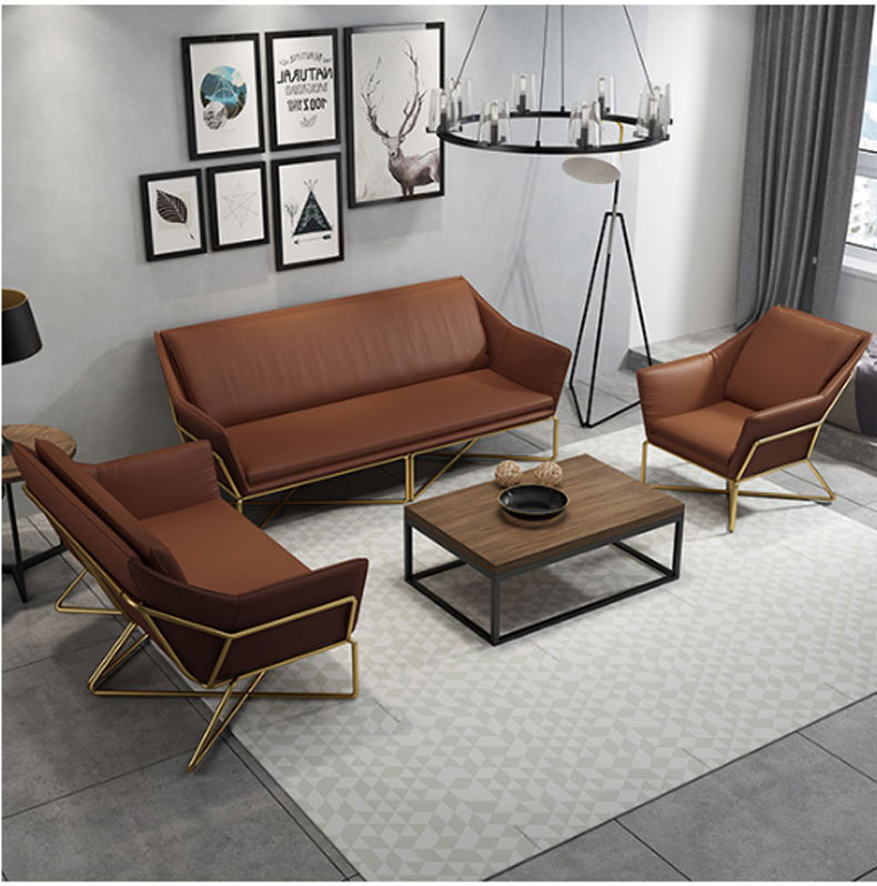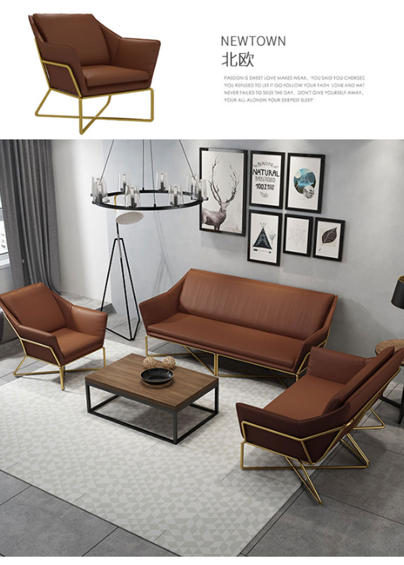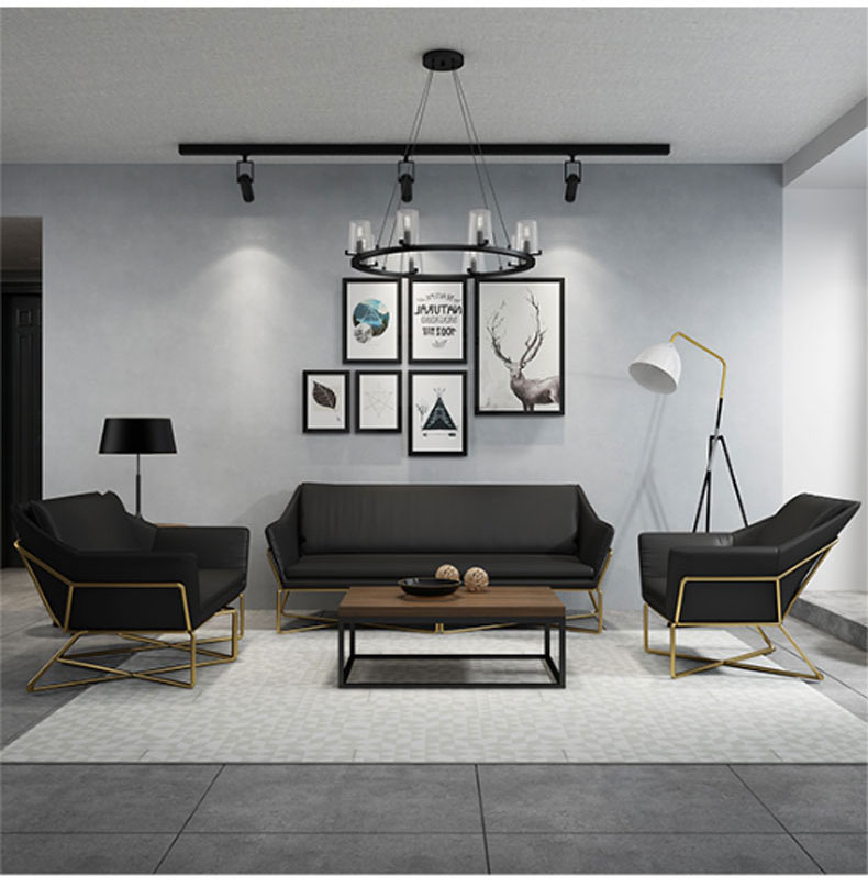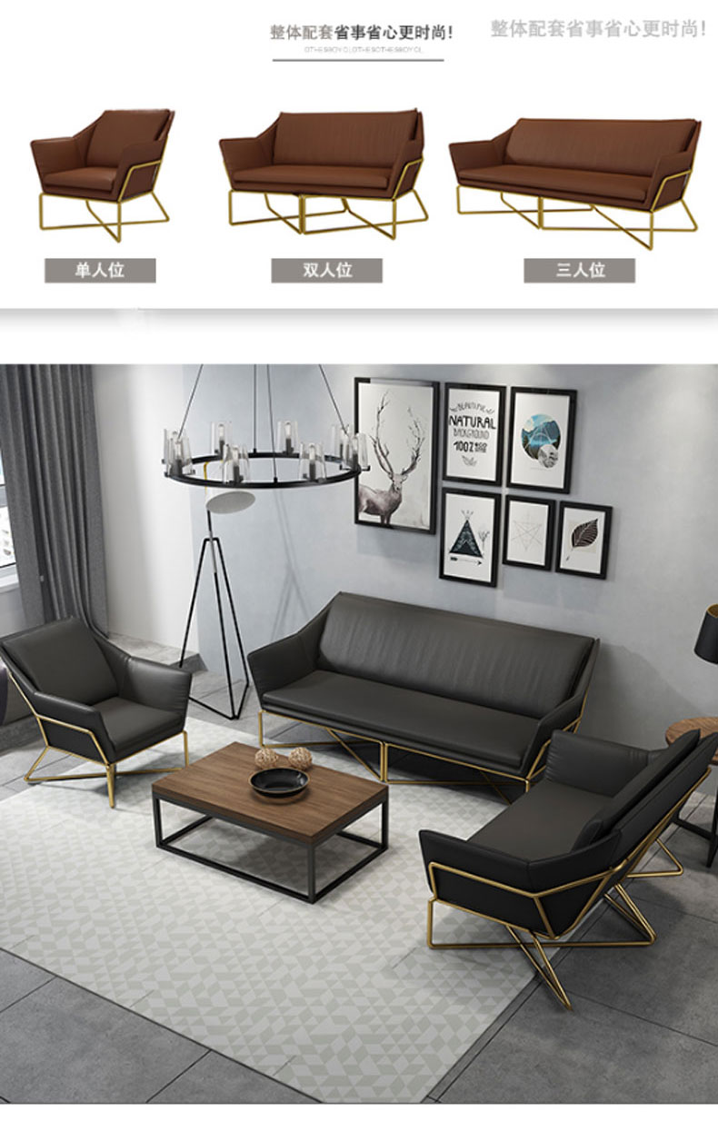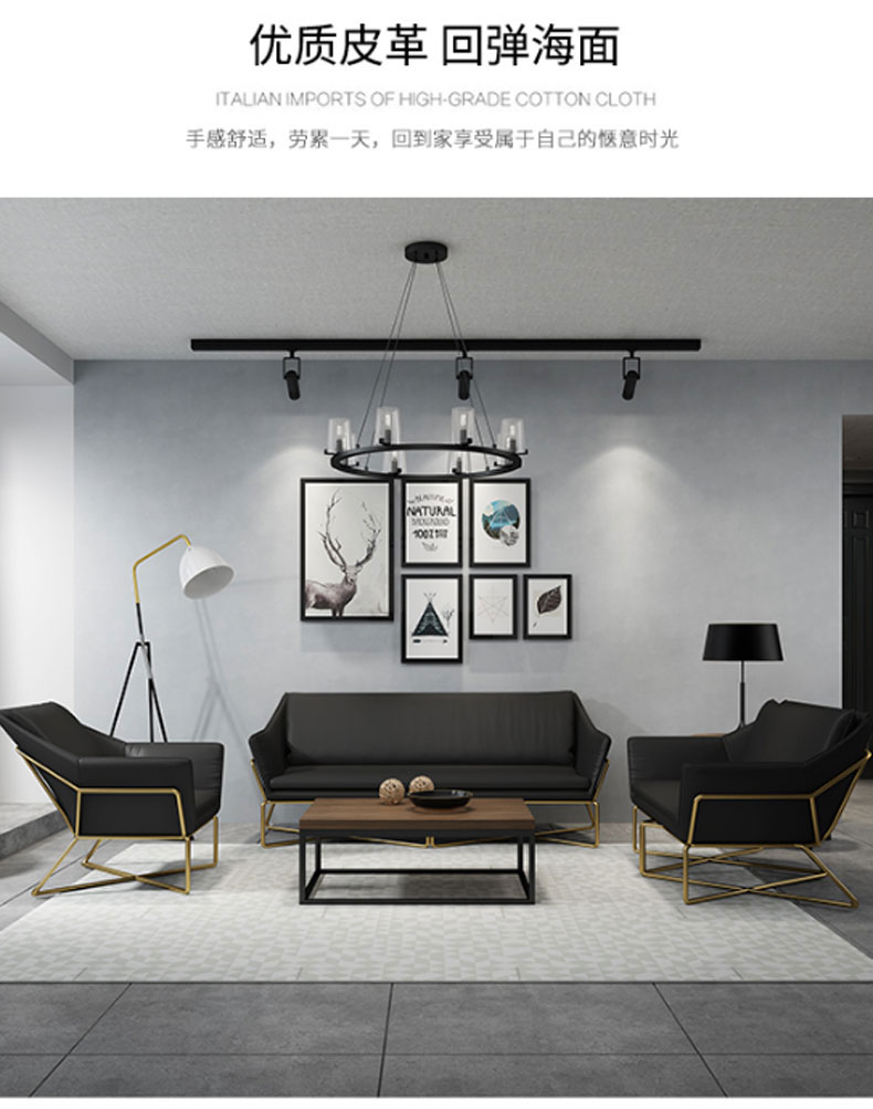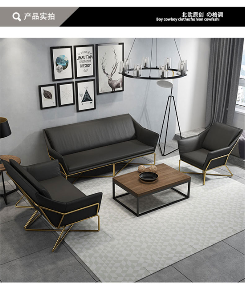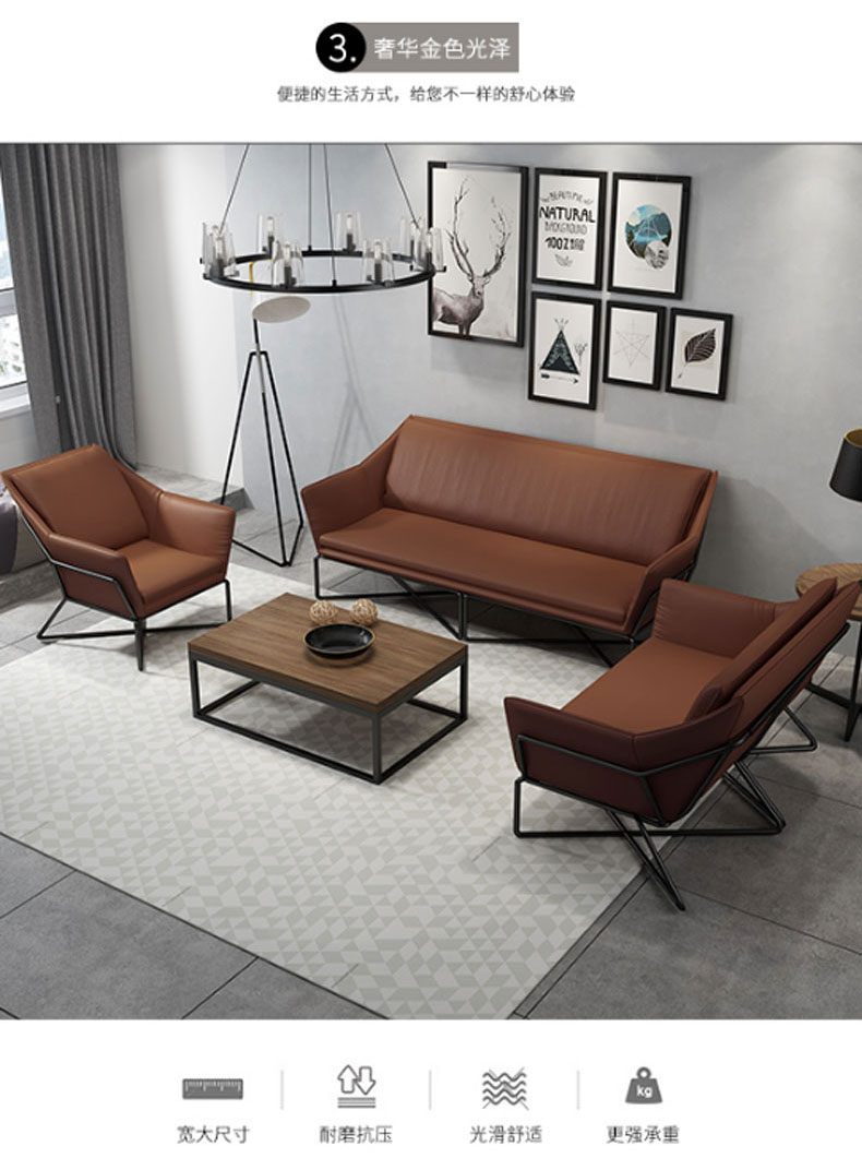简约现代小户型家用舒适铁艺沙发组合办公室简易休闲会客皮质沙发(三人)