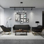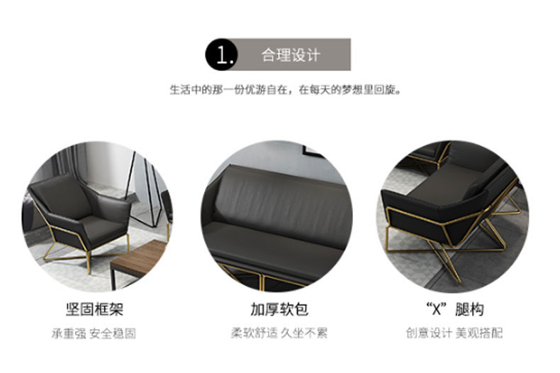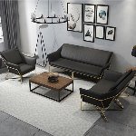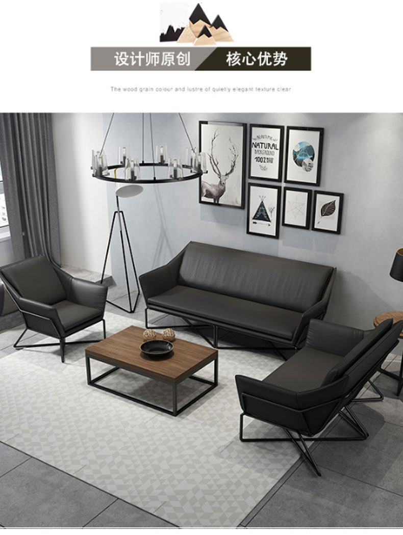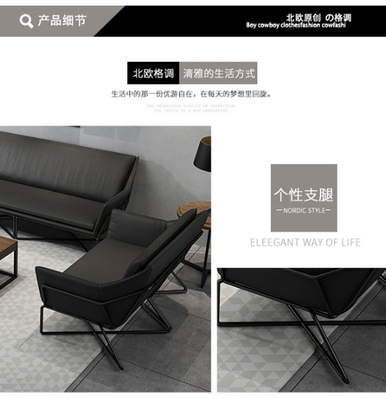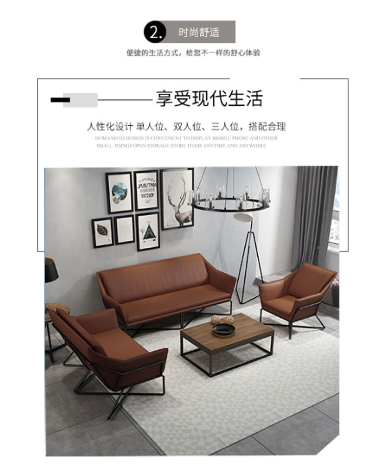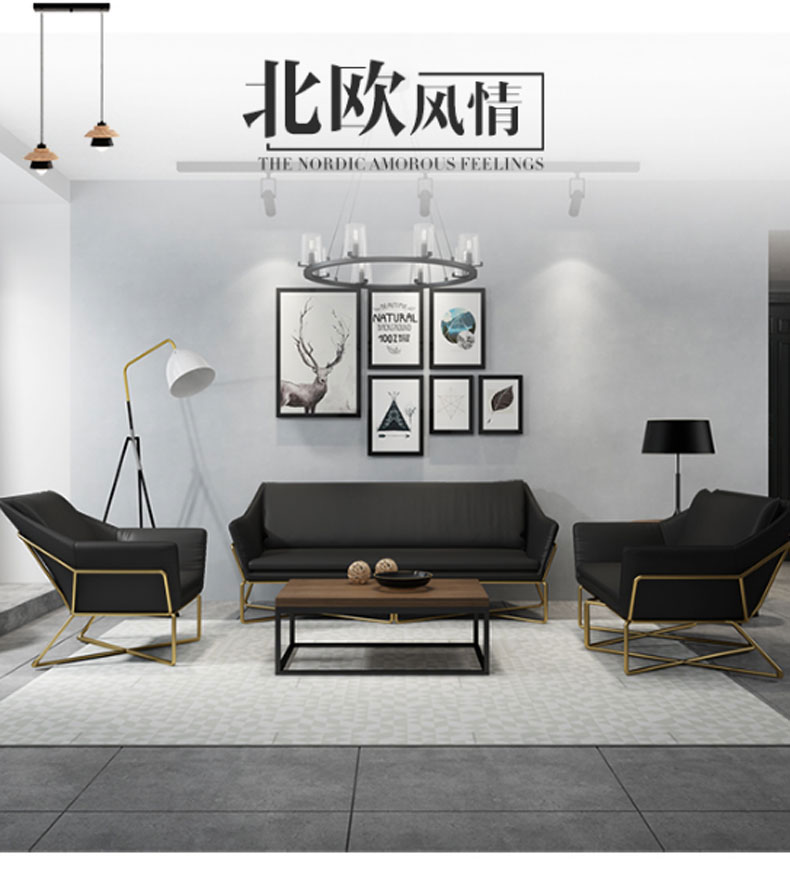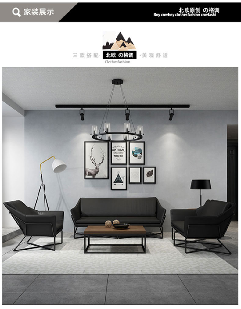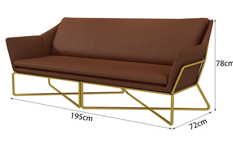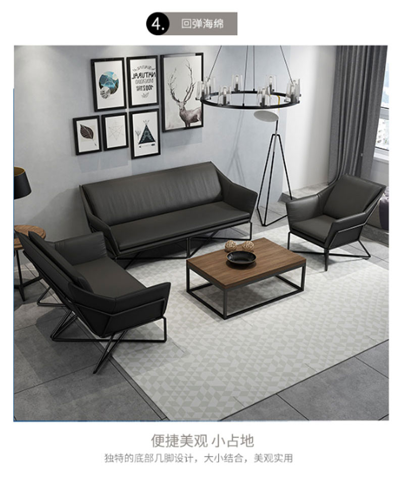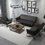 简约现代小户型家用舒适铁艺沙发组合办公室简易休闲会客皮质沙发(三人)