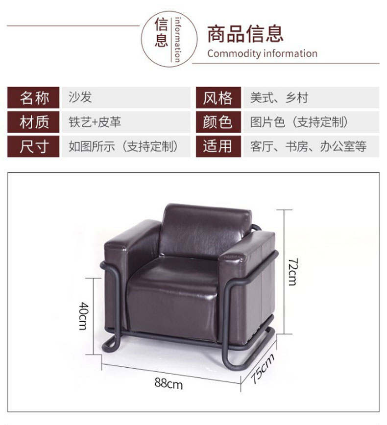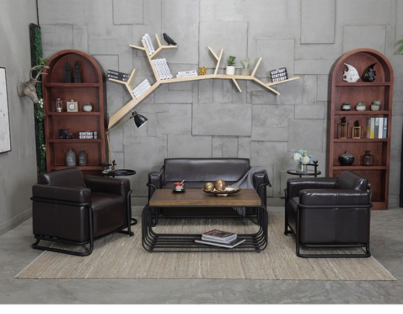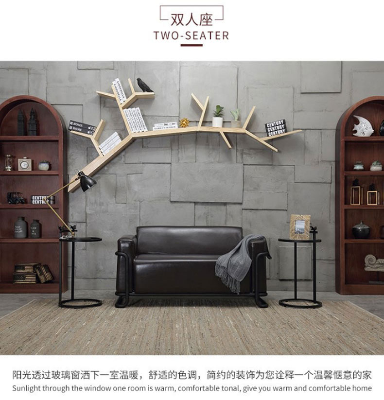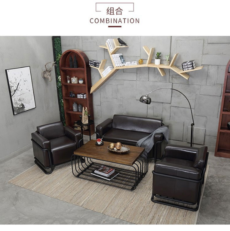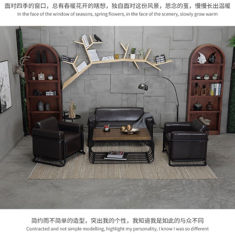 美式工业风复古头层皮怀旧客厅懒人休闲沙发组合厂家直销(三人沙发椅)