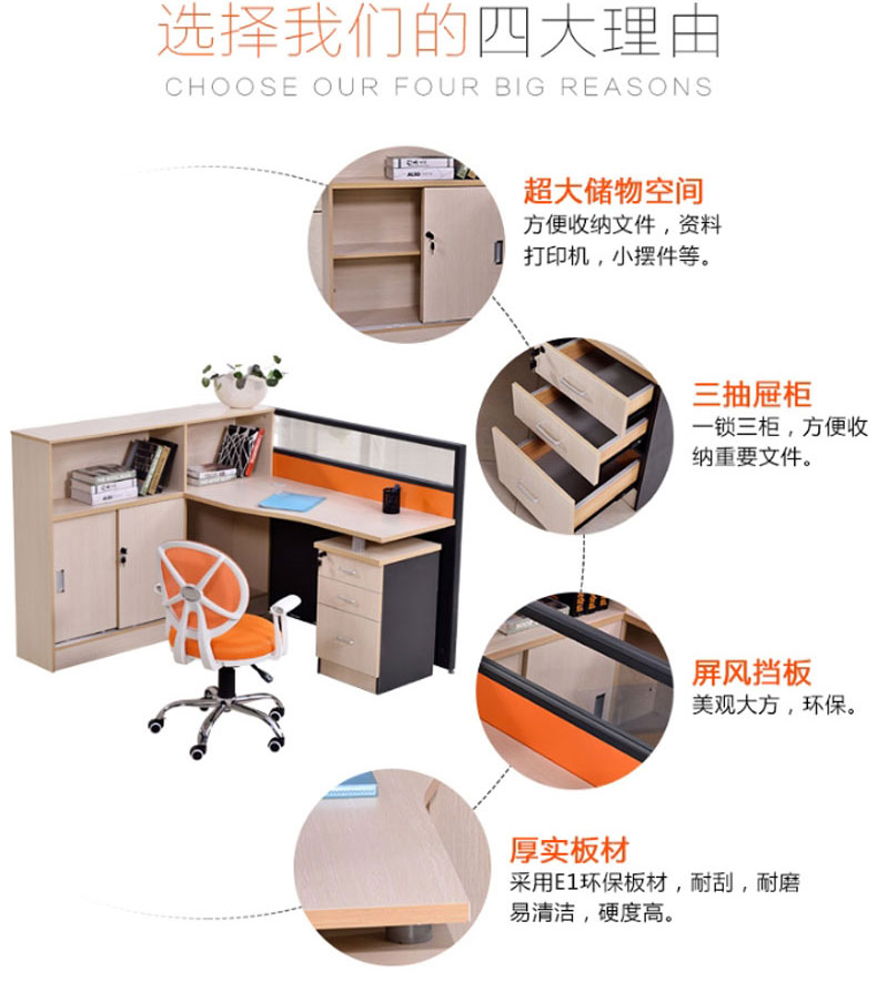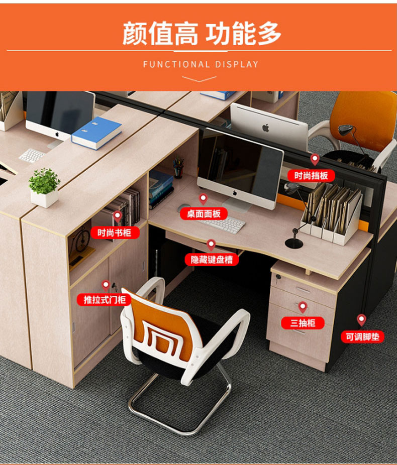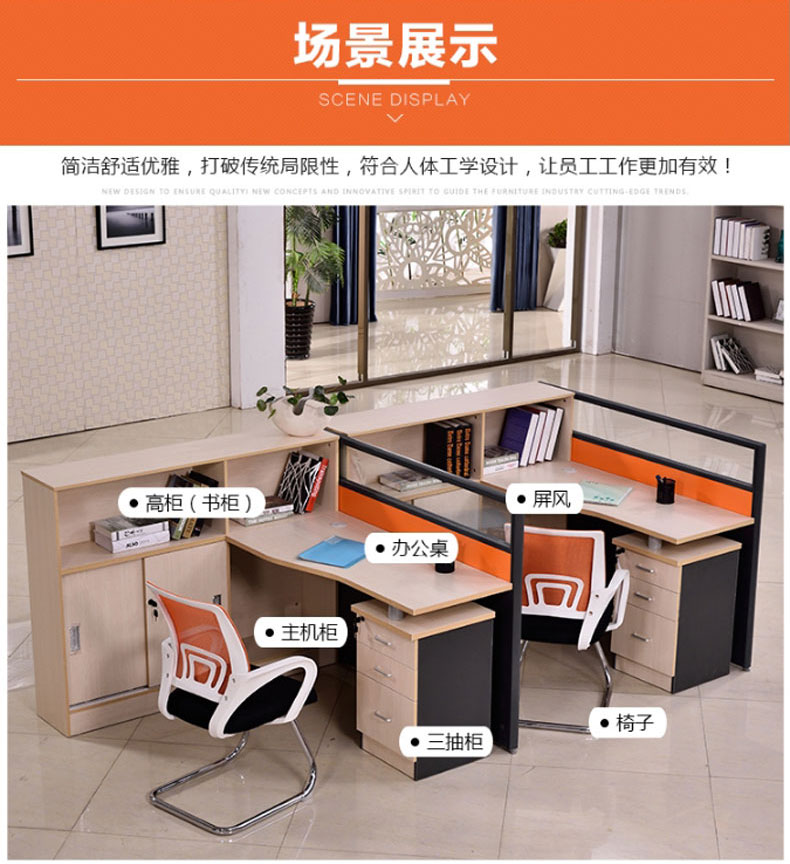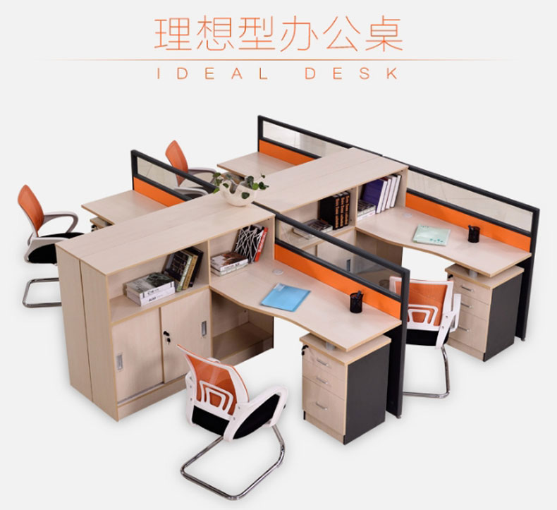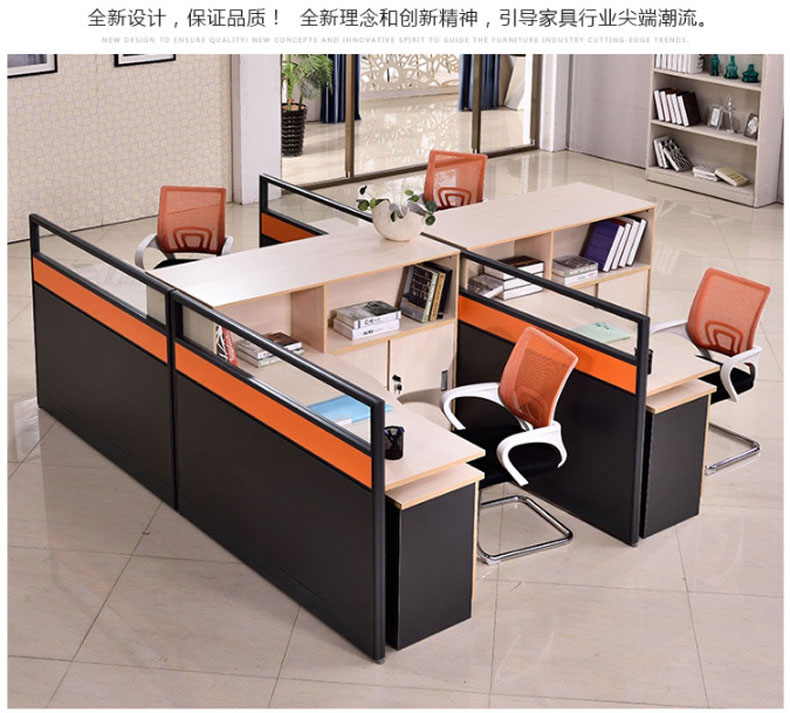 广州办公家具厂家简约四人位办公桌椅组合 屏风卡位 职员办公桌(四人位带椅子)