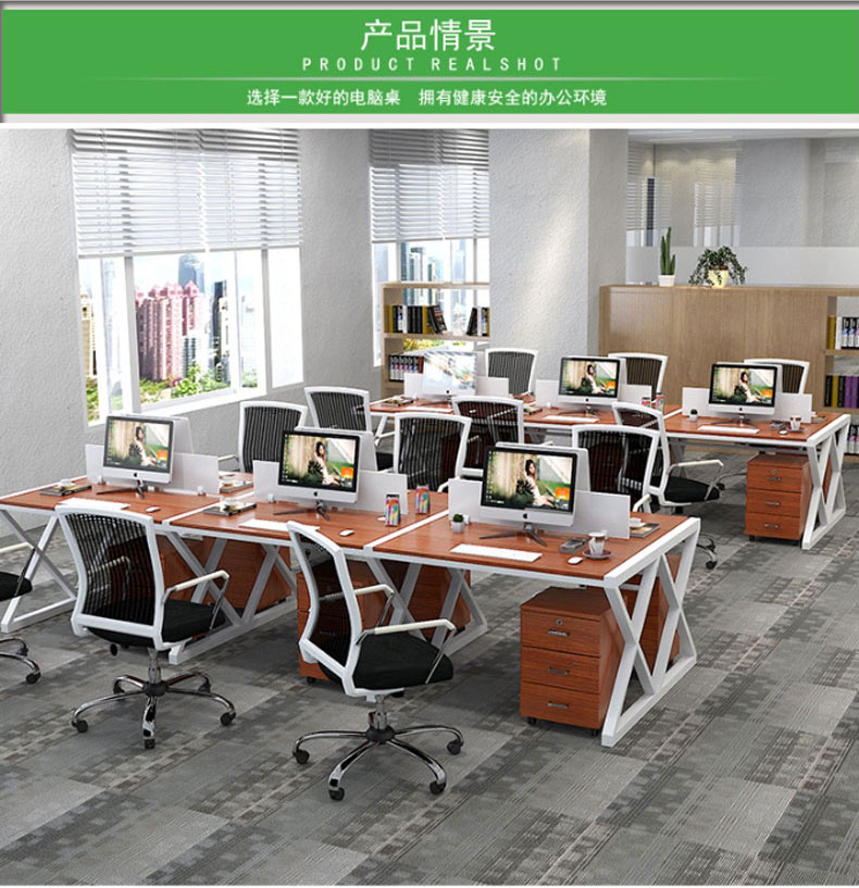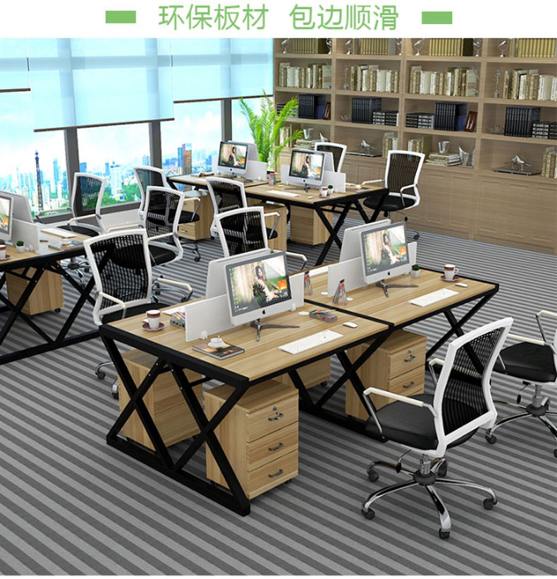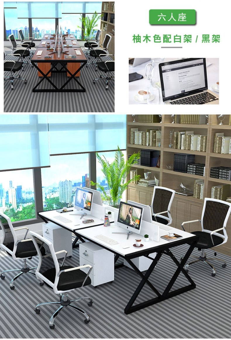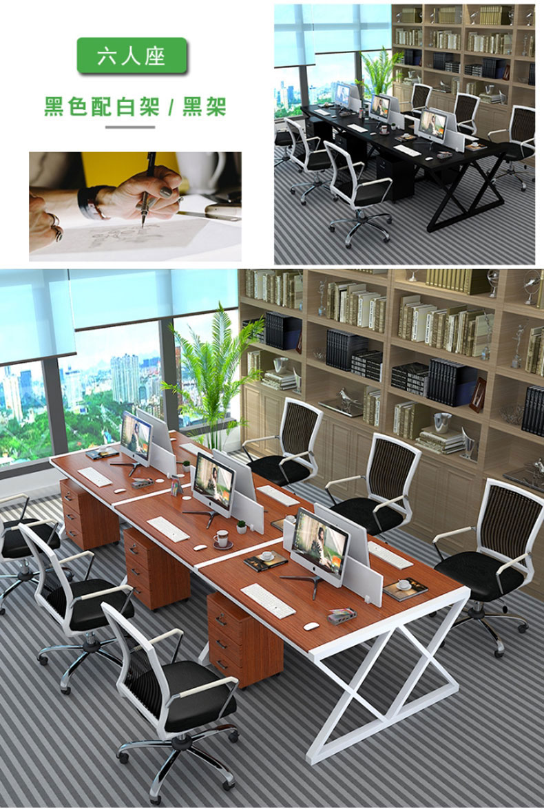简约现代办公桌职员四人位定制办公家具246人位电脑桌椅组合(六人位含柜)