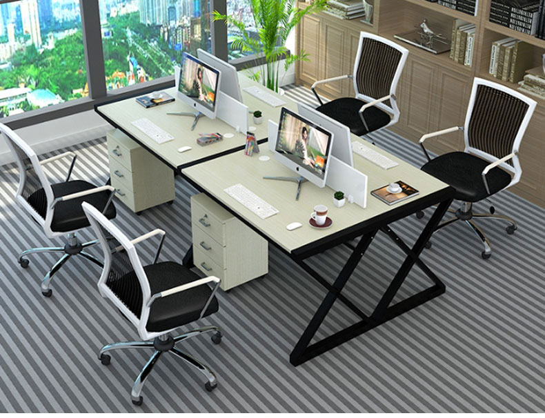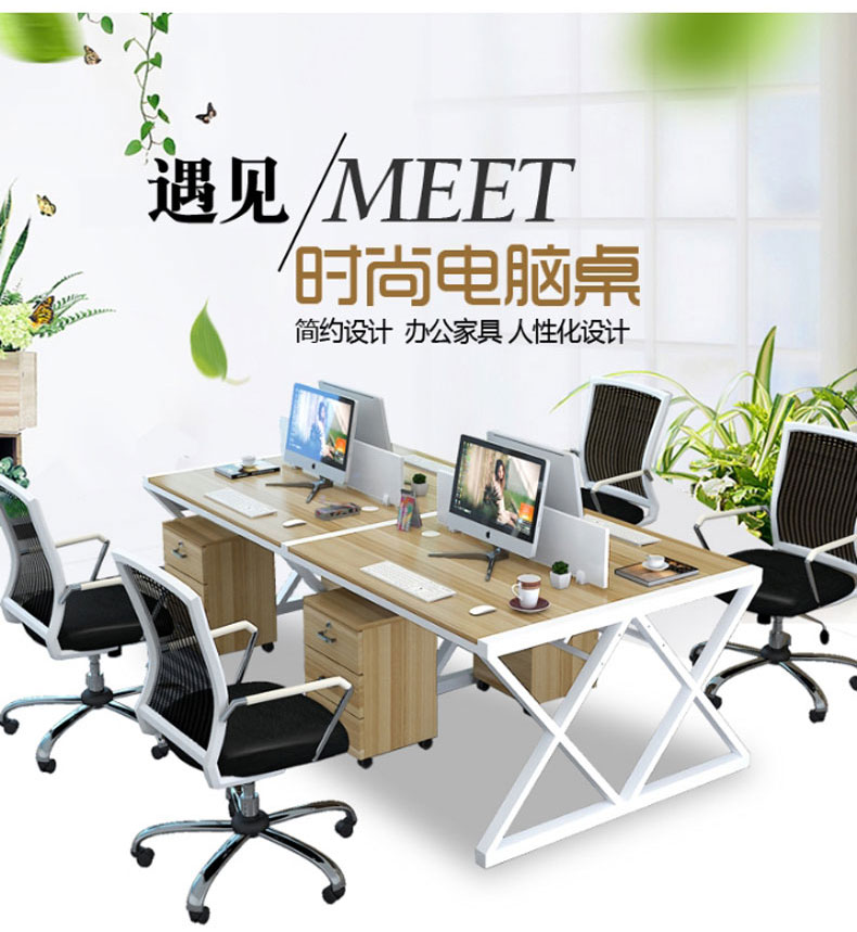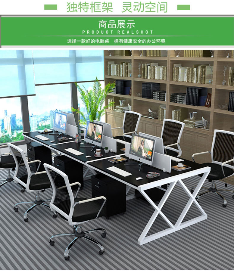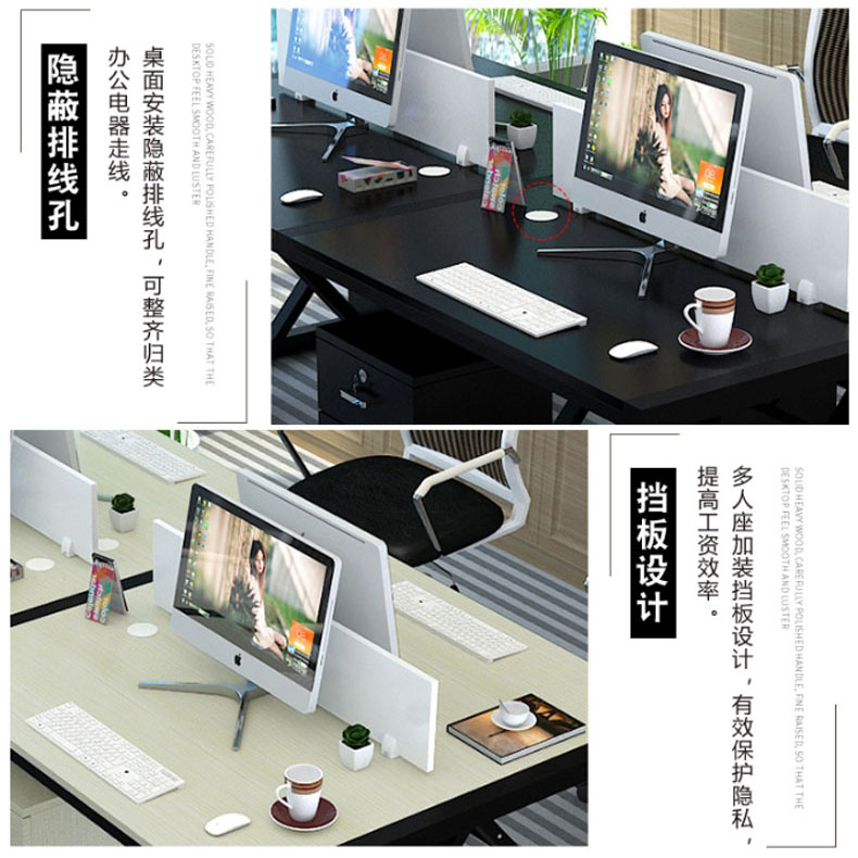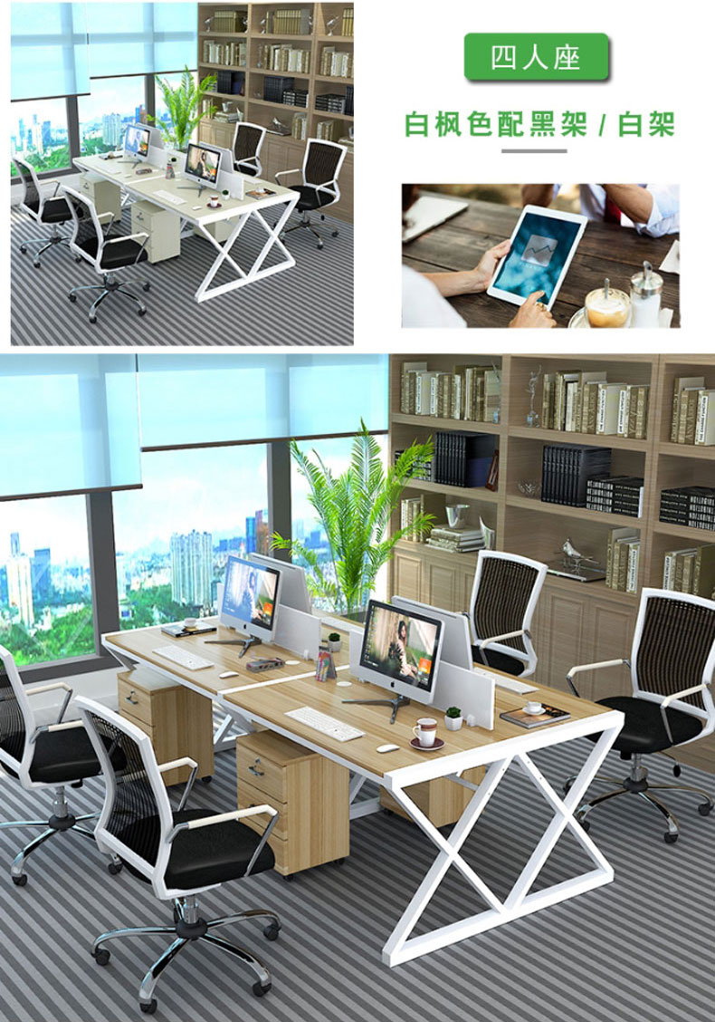 简约现代办公桌职员四人位定制办公家具246人位电脑桌椅组合(六人位含柜)