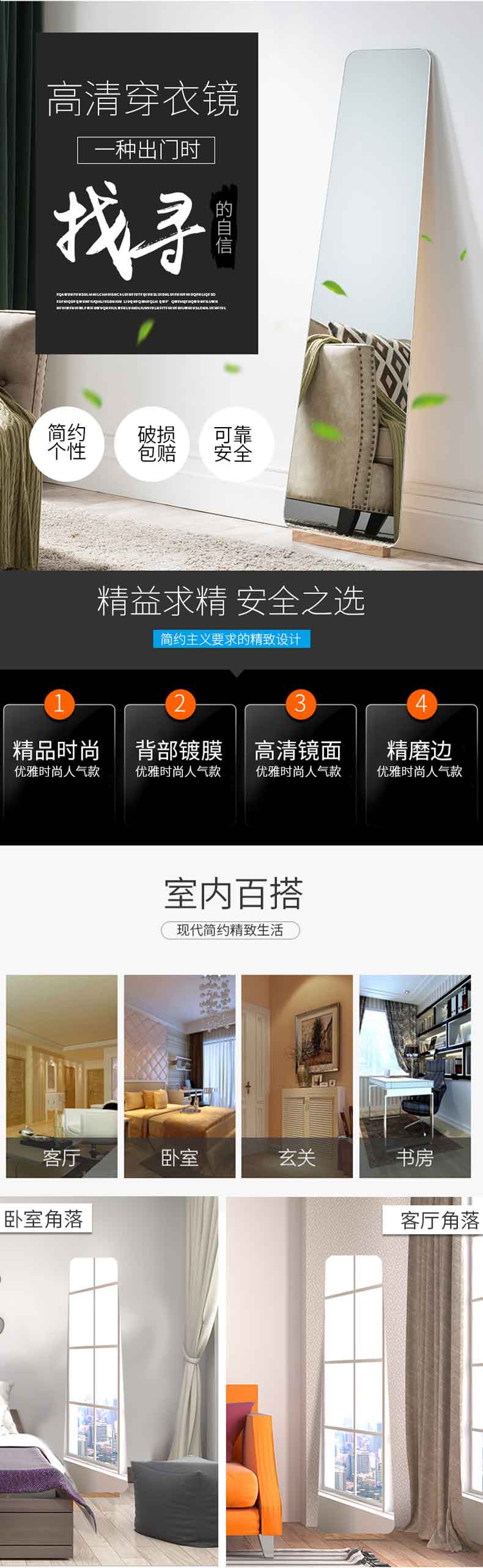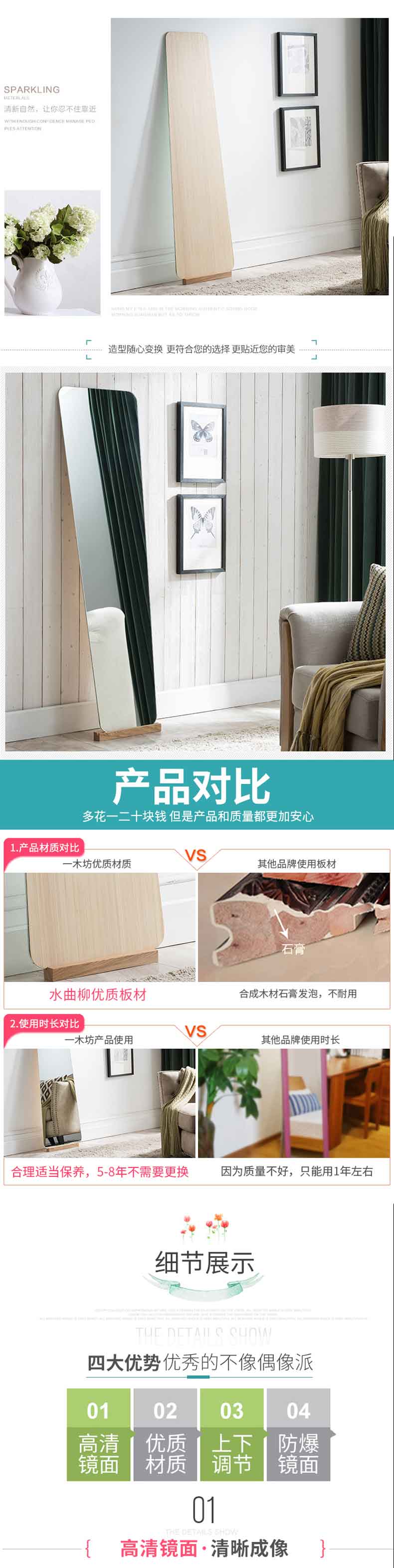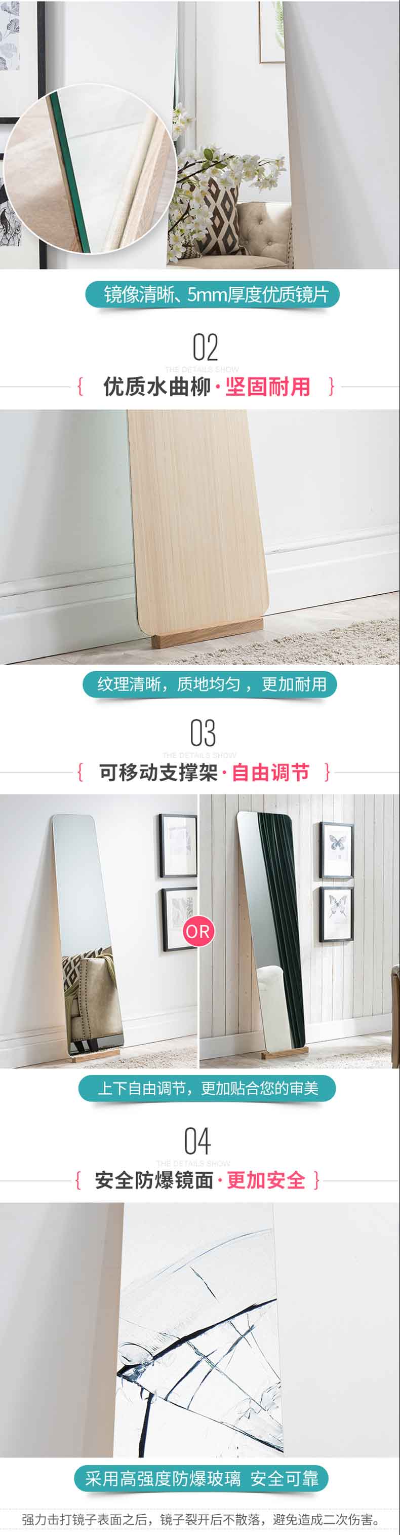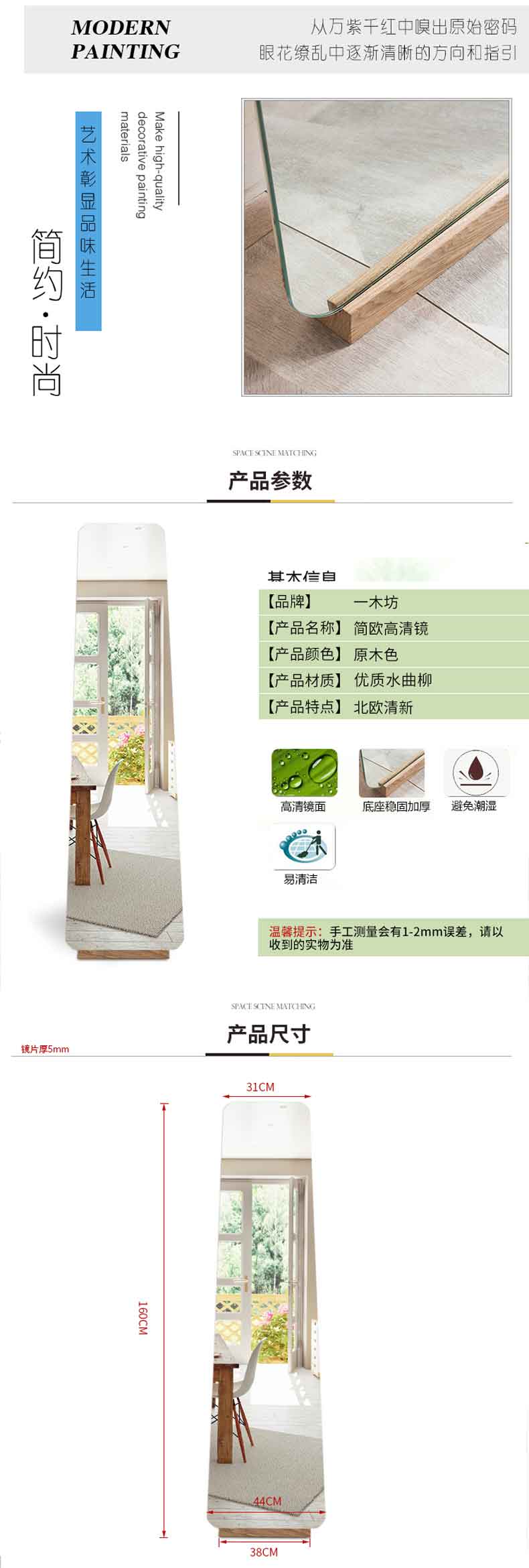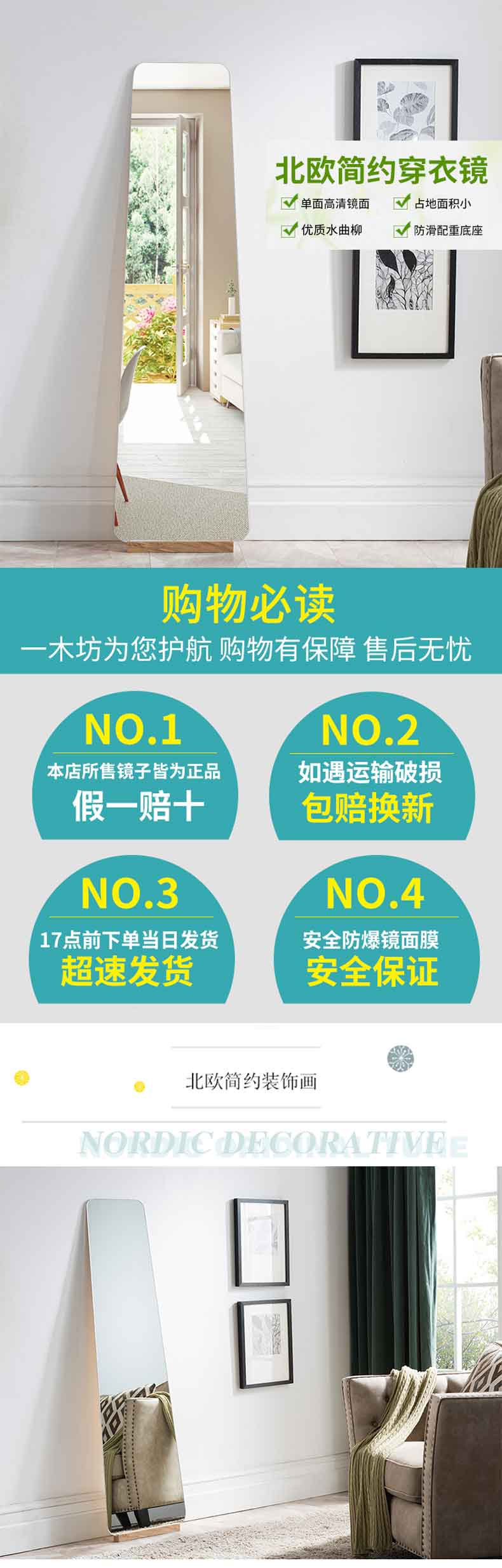 实木穿衣镜全身镜简约家用靠墙镜贴墙镜卧室客厅落地镜试衣大镜子(44*160CM)