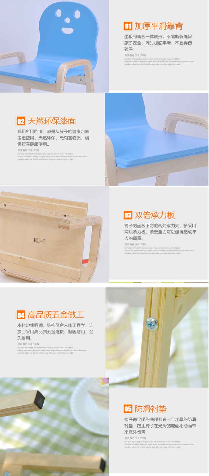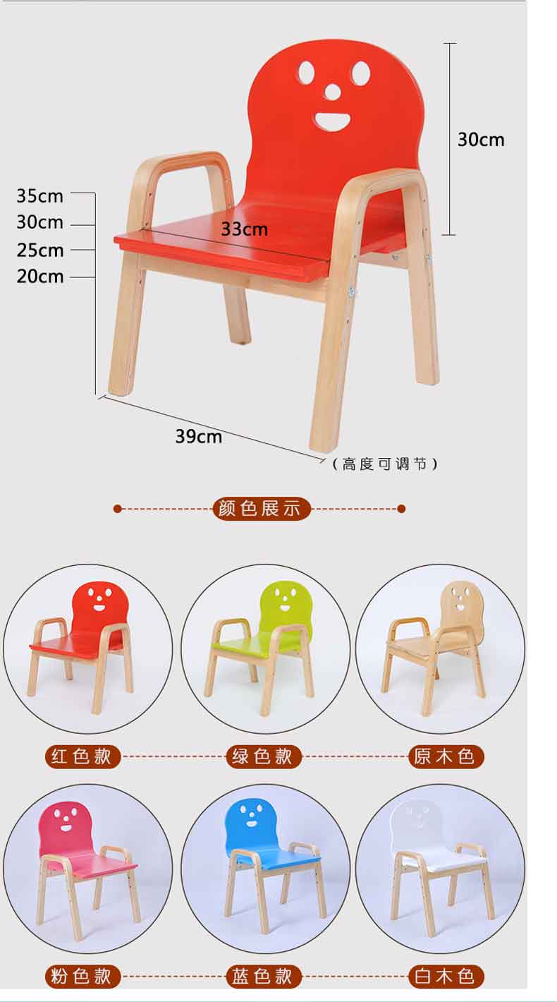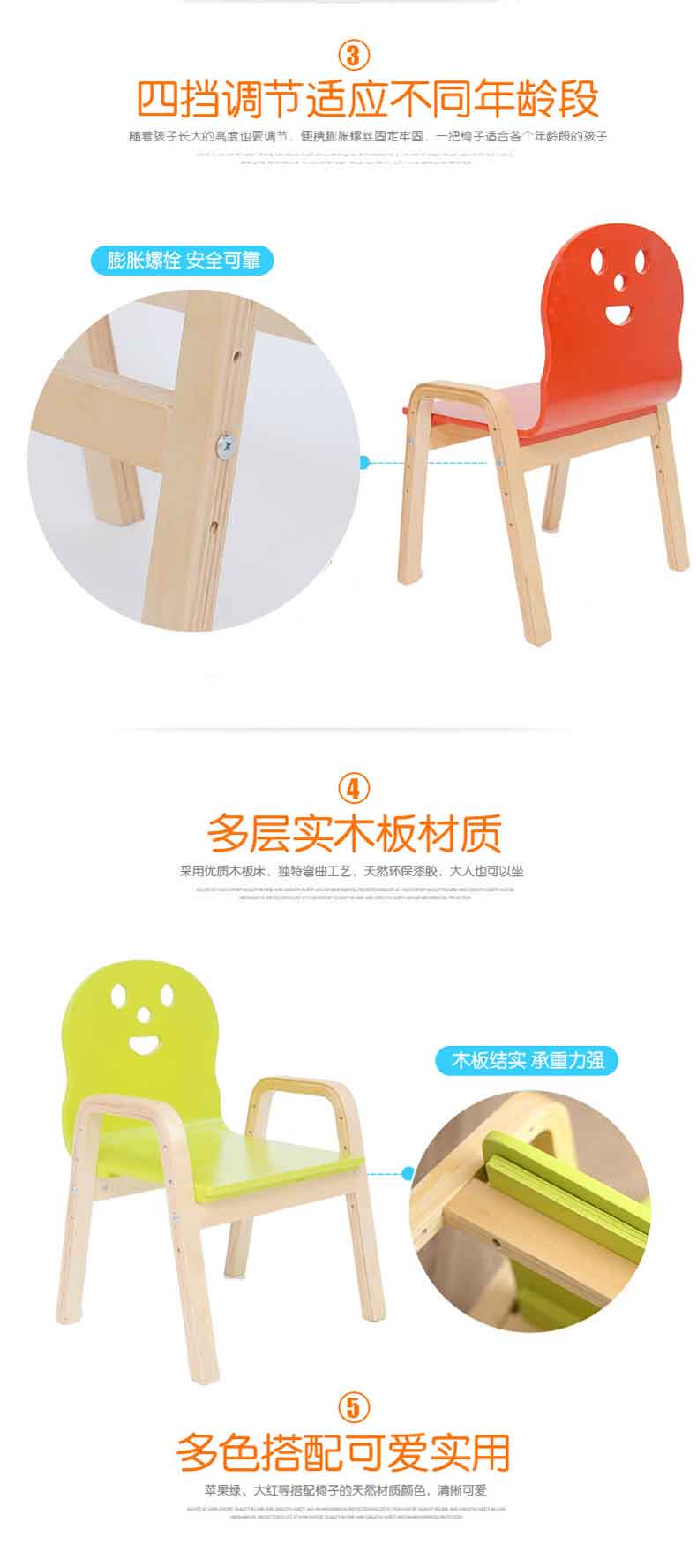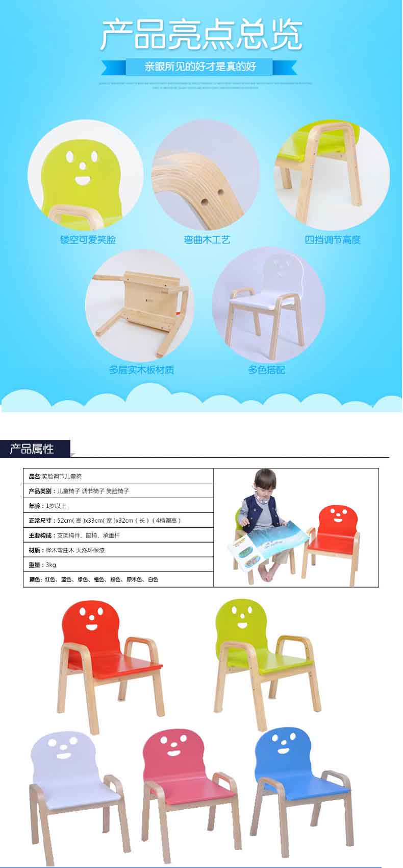 儿童实木椅 可调节笑脸椅 宝宝靠背椅儿童幼儿园专用椅