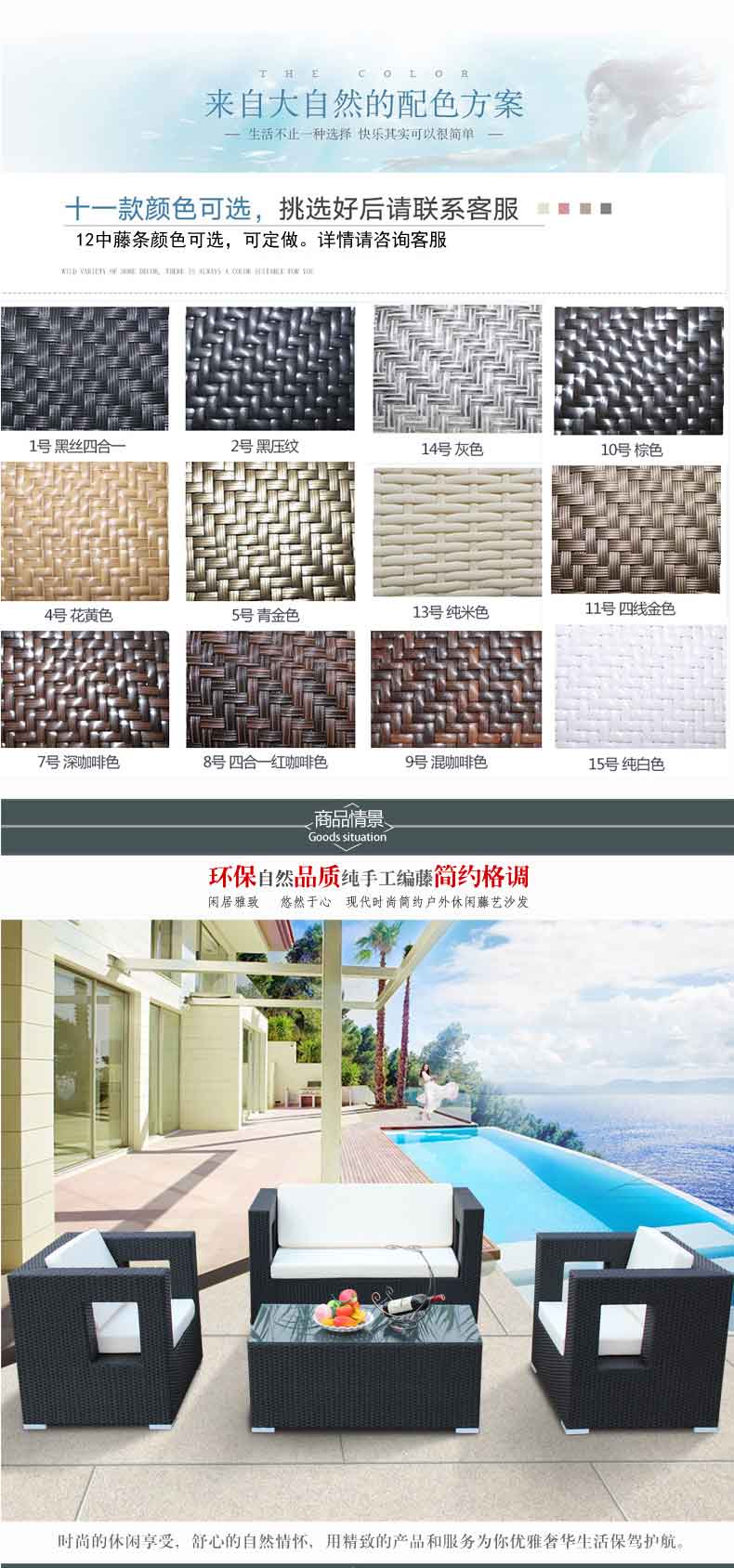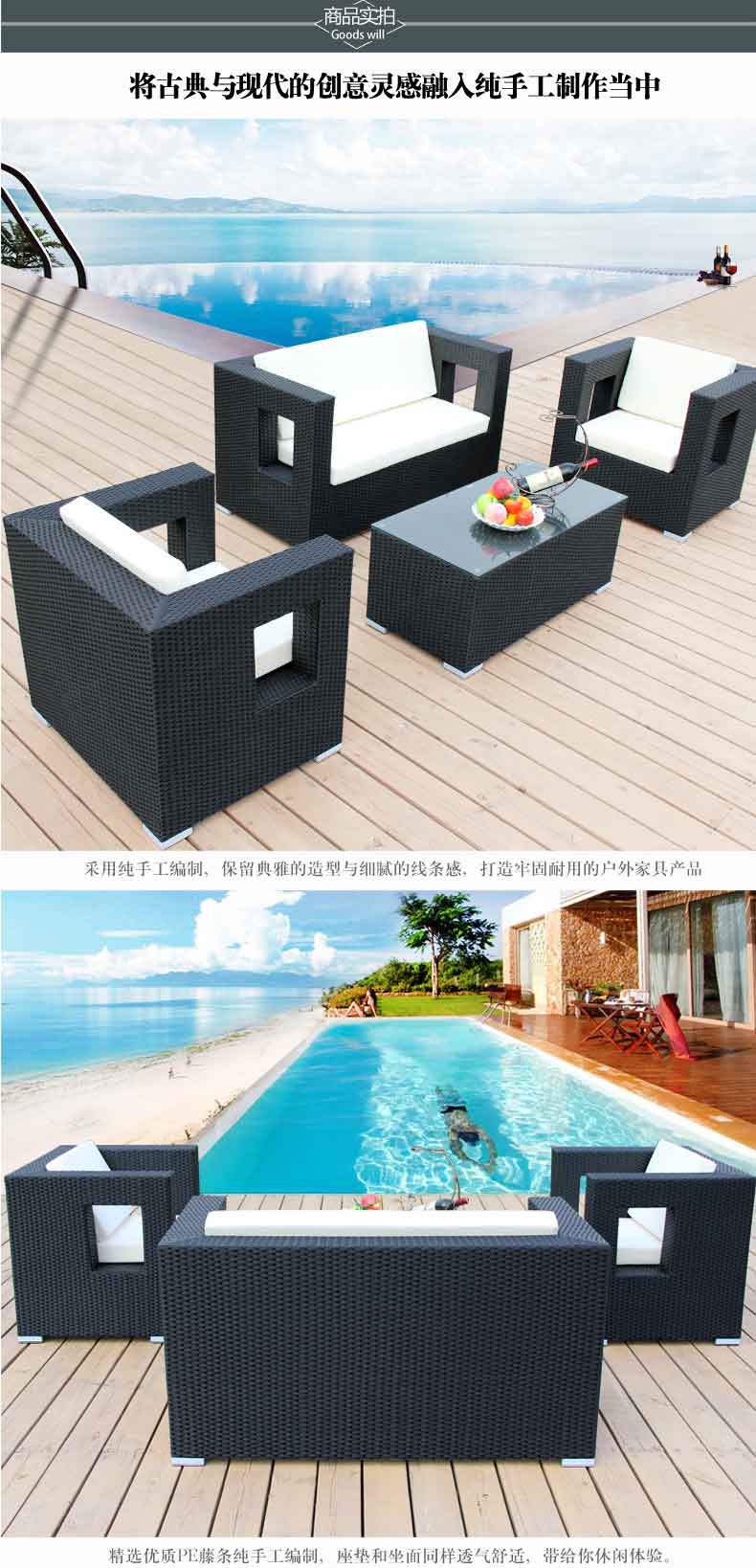 户外家具藤编沙发花园阳台客厅咖啡会所庭院室内藤沙发套装组合