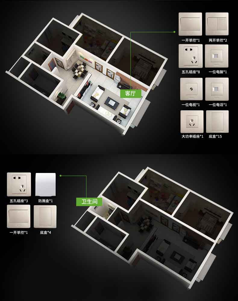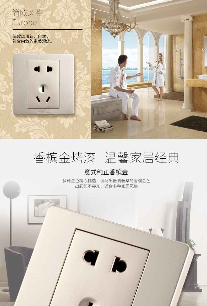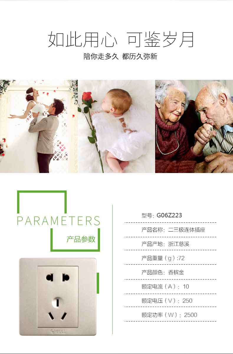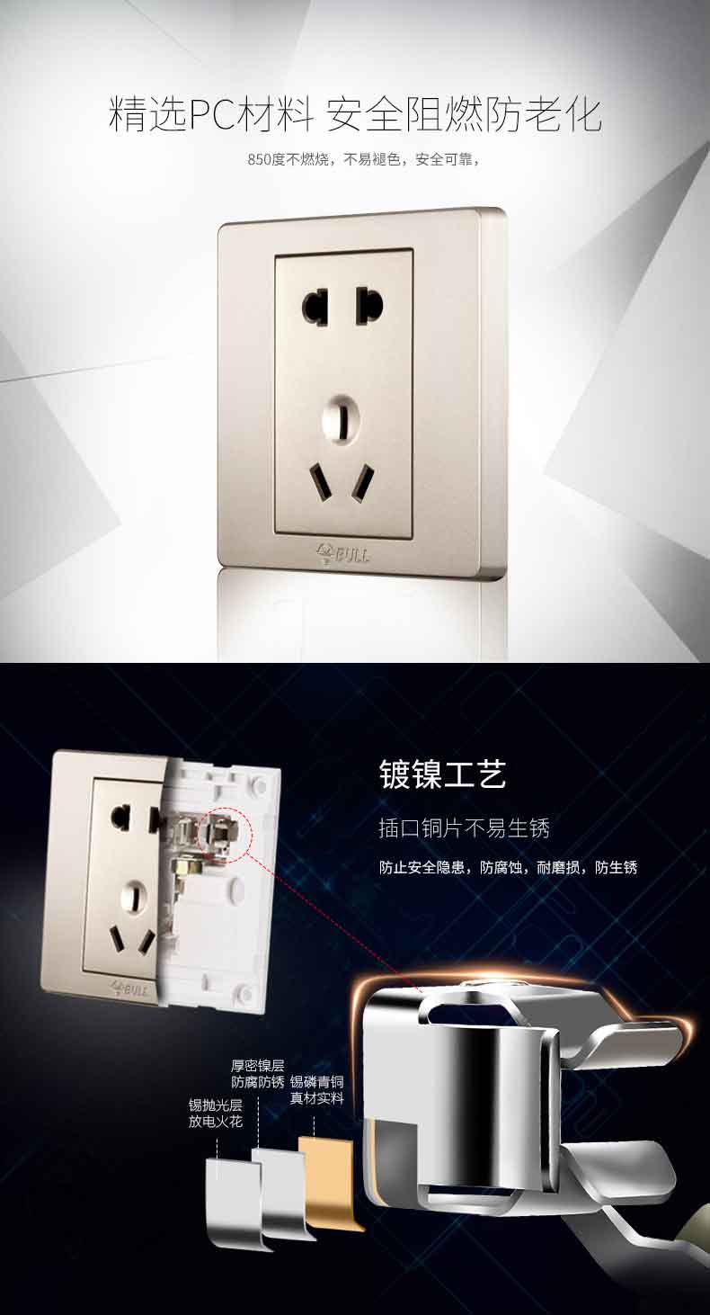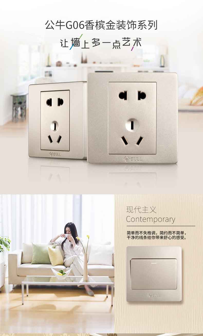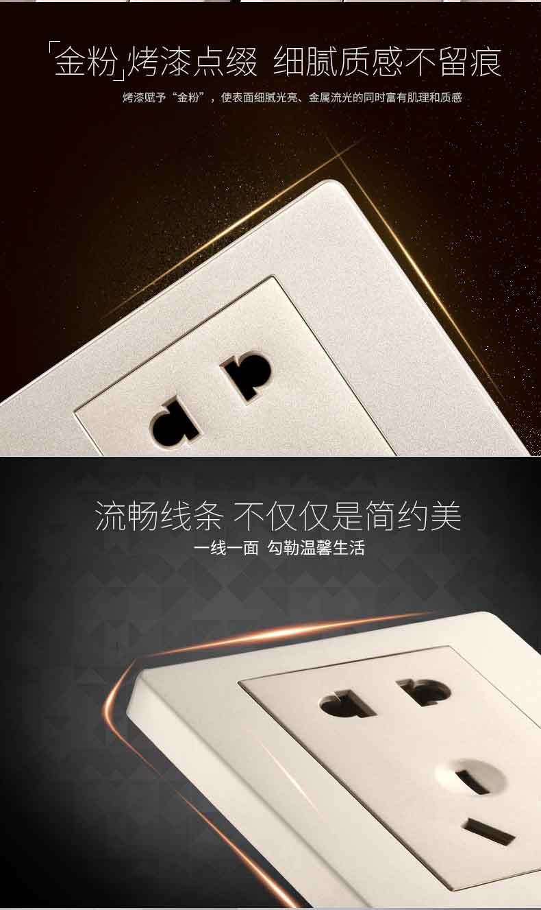 公牛G06Z223 香槟金 开关插座面板电源墙壁插座面板墙壁五孔插座