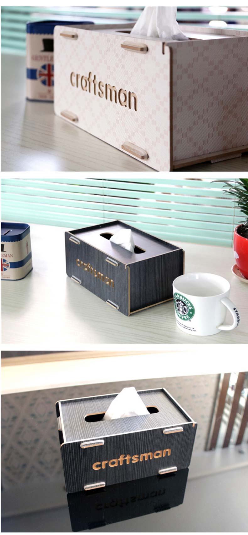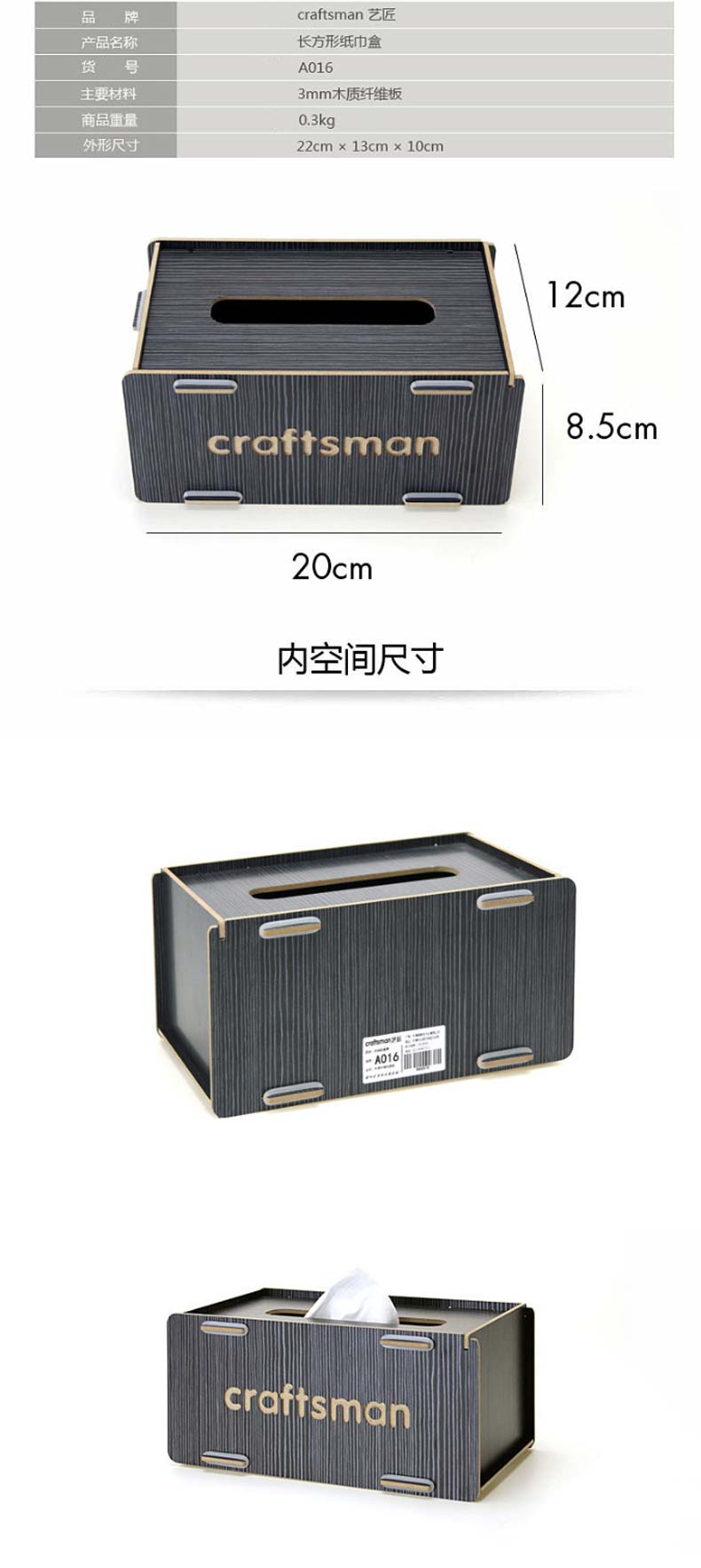 craftsman艺匠创意木质桌面收纳盒客厅车载抽纸盒纸巾盒A016