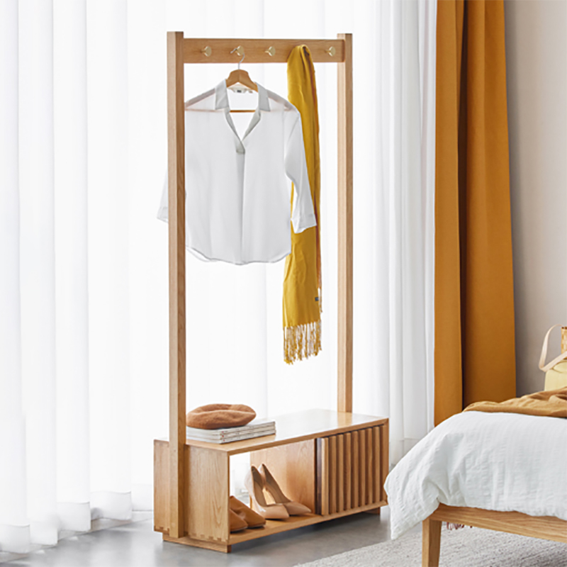 实木衣架现代简约小户型卧室鞋柜挂衣架组合