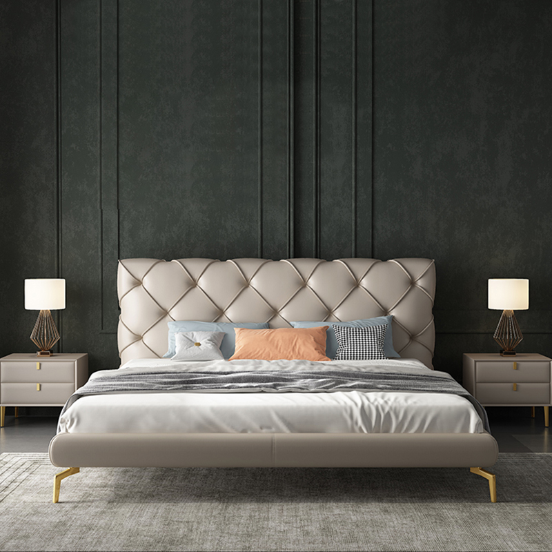 彩家居MYA-B05S-BS轻奢真皮床主卧室1.5/1.8米奢华双人现代简约设计