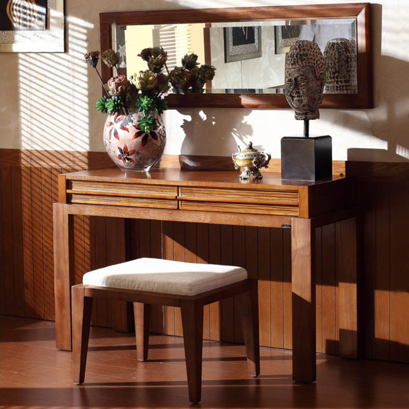 三木印象 东南亚巴厘岛风格新中式卧室家具 实木梳妆台书桌两用