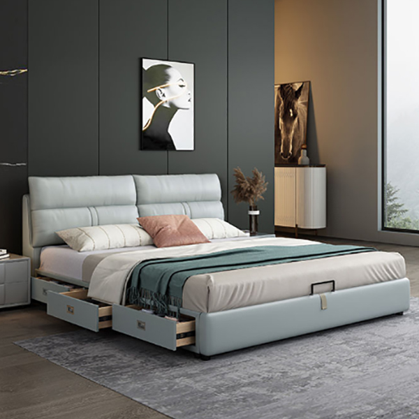 意式极简皮床现代简约双人床1.8米储物床主卧高箱大床轻奢婚床