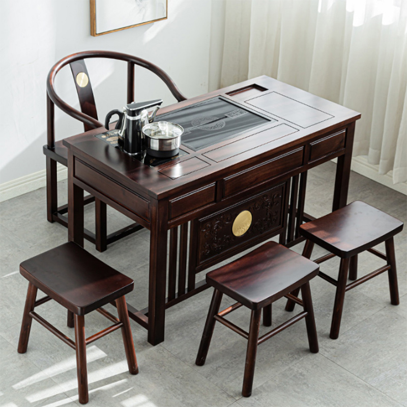 茶桌椅组合实木新中式檀木色茶台家用阳台功夫茶几