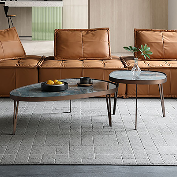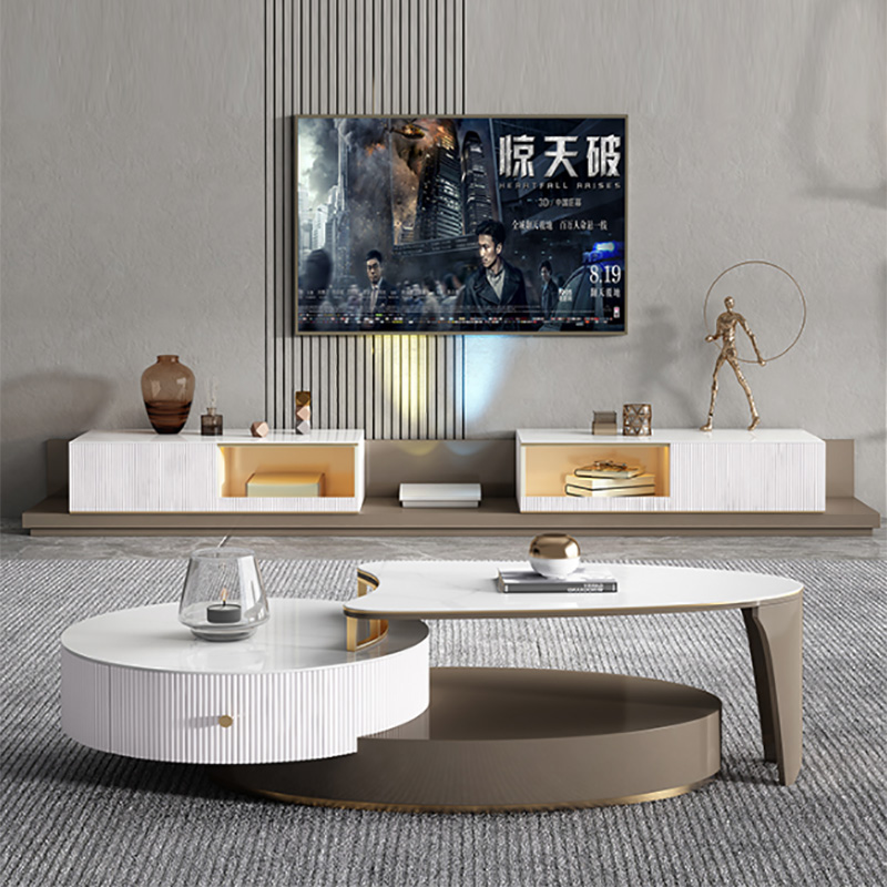 轻奢茶几电视柜组合简约小户型客厅家具椭圆形可伸缩岩板创意茶几