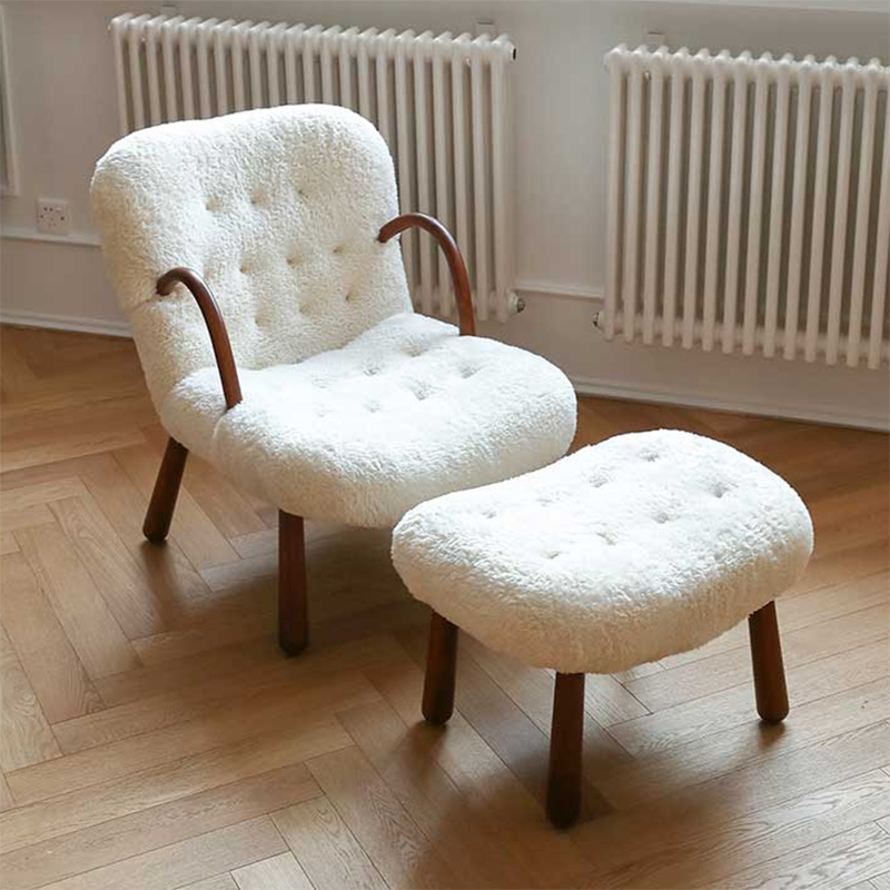 雾粉色蓬松滩羊毛杨木玄关衣帽间换鞋凳