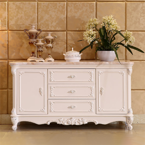 美式欧式餐边柜储物柜酒柜象牙白色实木古典田园简约定制大理石