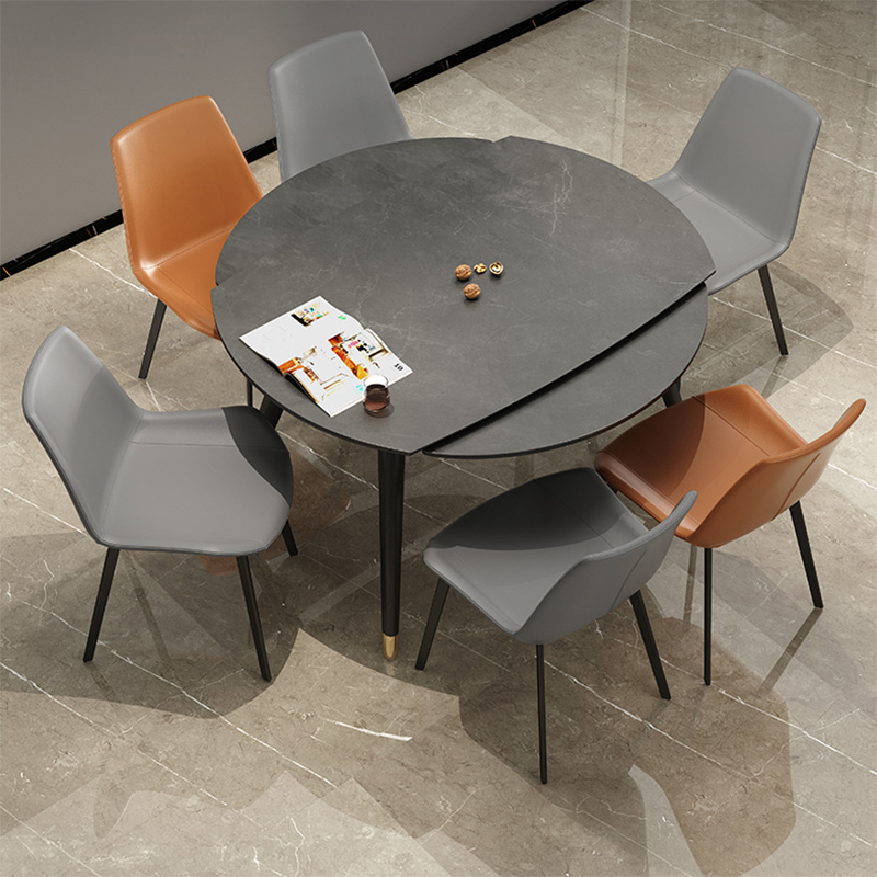 进口白蜡木折叠可伸缩岩板餐桌现代简约小户型餐桌椅组合可变圆桌