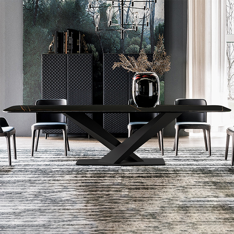 意式轻奢餐桌椅组合家用后现代简约岩板餐厅吃饭桌