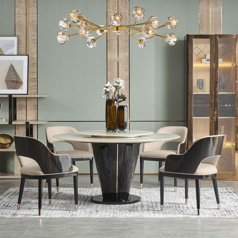 萃集CT106雅仕白大理石餐桌餐台转盘饭桌现代轻奢风格实木