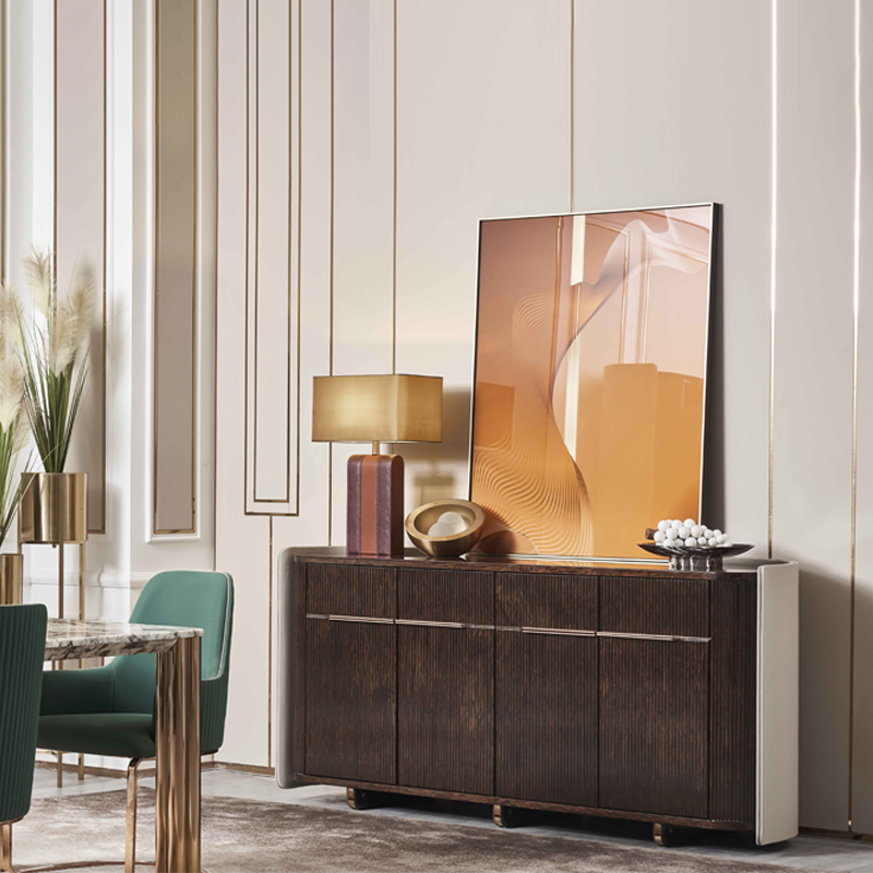 萃集CBG121实木餐边柜米色现代轻奢风格柜子咖啡色木柜