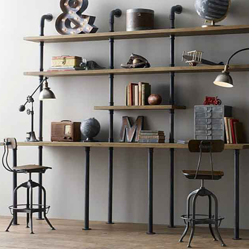 美式铁艺水管置物架实木简易书架 创意办公室客厅组合书柜(2000*500*2000mm)
