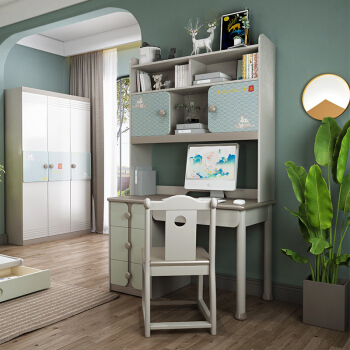 儿童书桌书架书柜一体桌可升降小学生学习桌