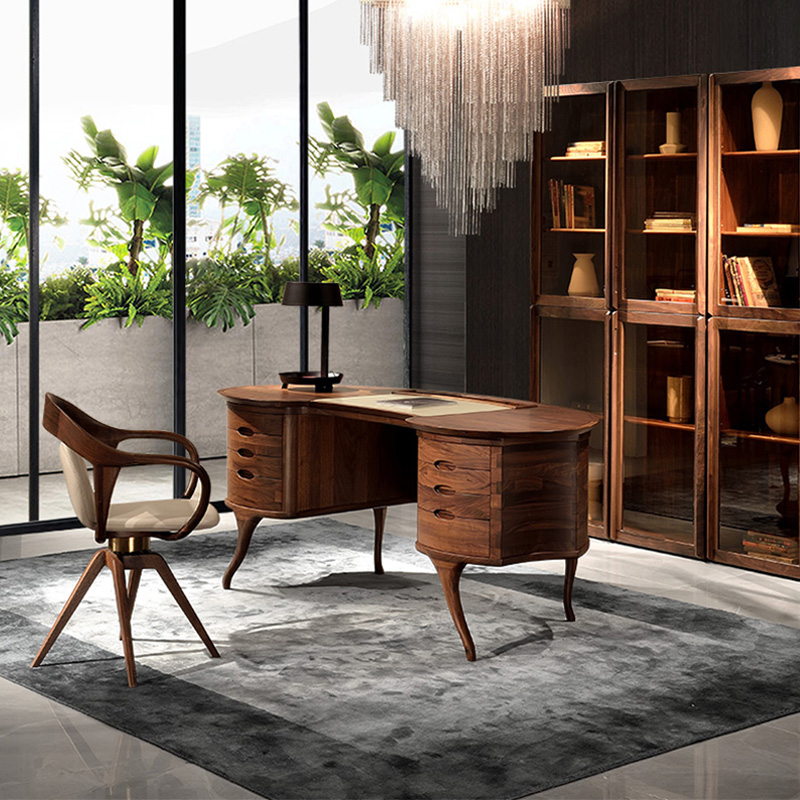 北美黑胡桃木书桌北欧家具书房桌子电脑台轻奢意式实木办公桌家用
