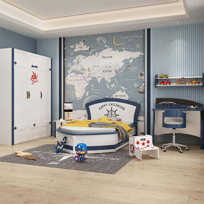 儿童床男孩船型单人床带护栏可定制航海创意床