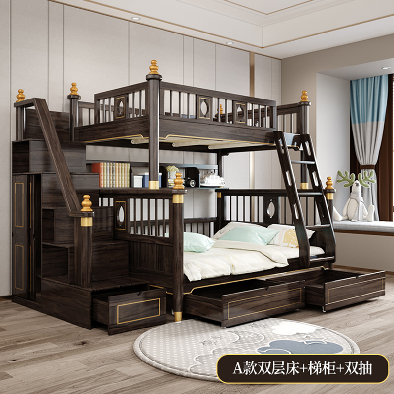 全实木新中式上下床双层床儿童床男孩轻奢美式上下铺