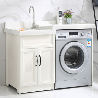 滚筒洗衣机柜子石英石台面带水池阳台组合