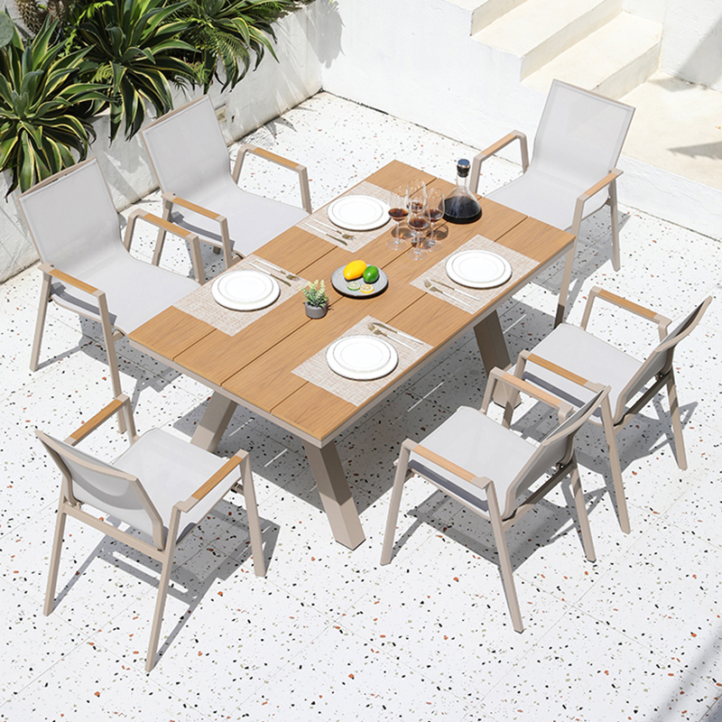 户外桌椅庭院防腐木别墅长凳阳铝合金塑木桌椅组合