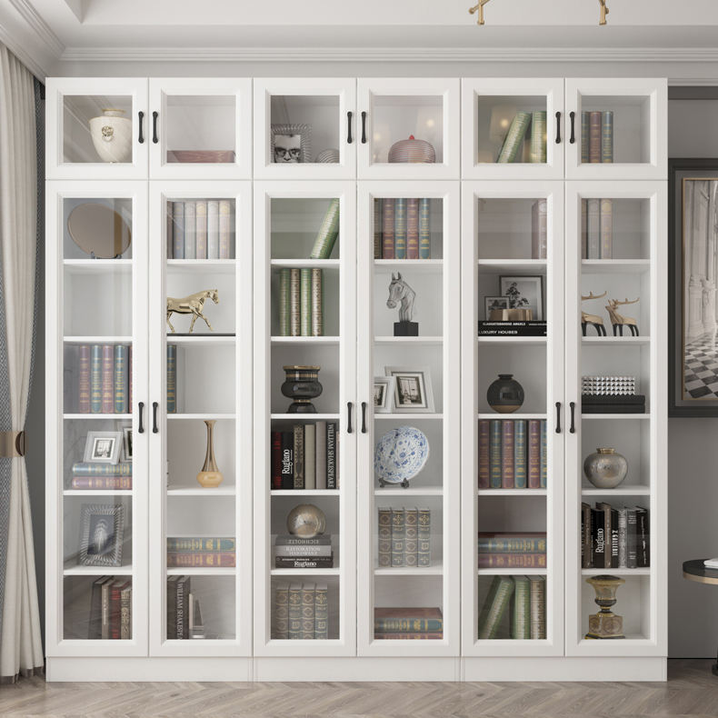 定制落地书柜实木带门收纳柜储物格子柜展示柜