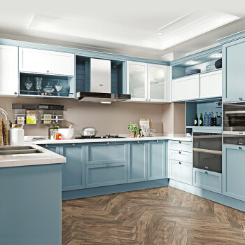 全屋定制实木整体橱柜定制定做小清新风格厨房柜