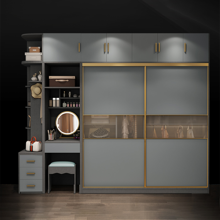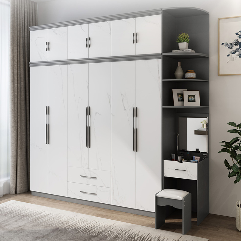 衣柜现代简约带顶柜边柜卧室家用梳妆台一体北欧大衣橱