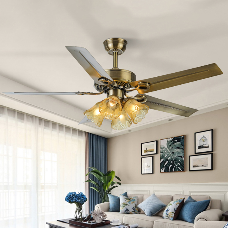 铁叶吊扇灯木叶卧室客厅餐厅美式电扇灯复古吊灯电风扇灯