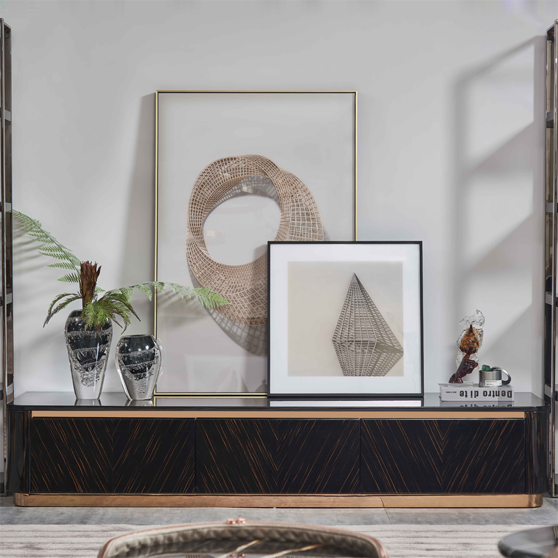 萃集KTV074电视柜黑金色木柜地柜实木柜子现代轻奢风格