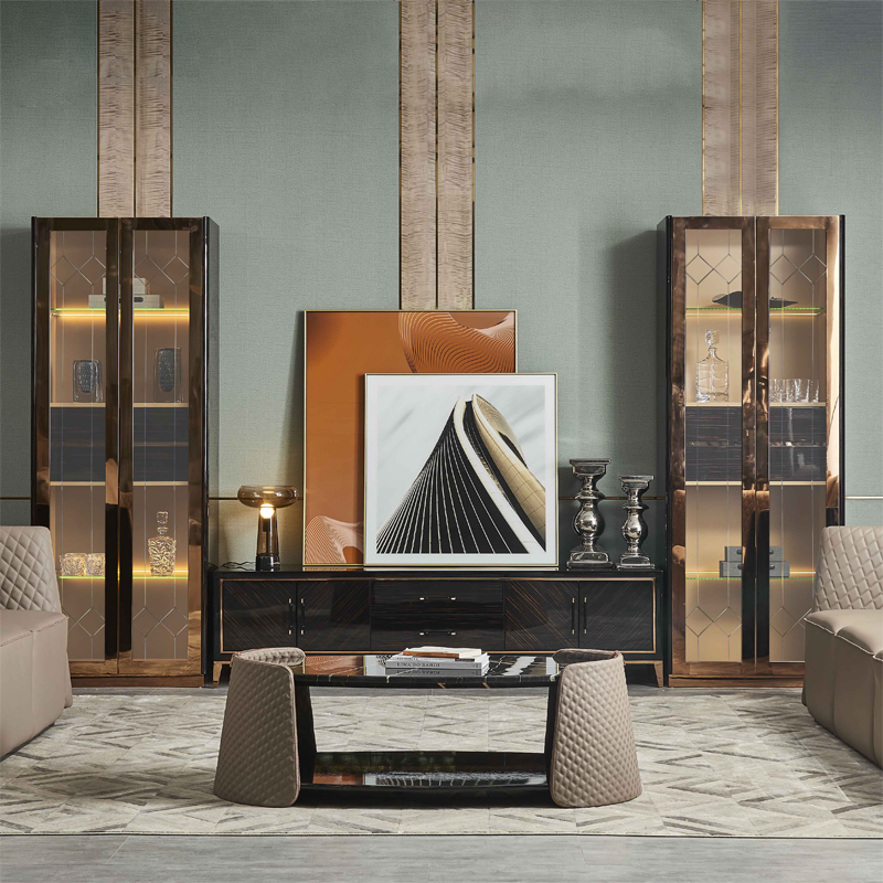 萃集KTV073-1地柜黑金色电视柜实木柜子现代轻奢风格木柜