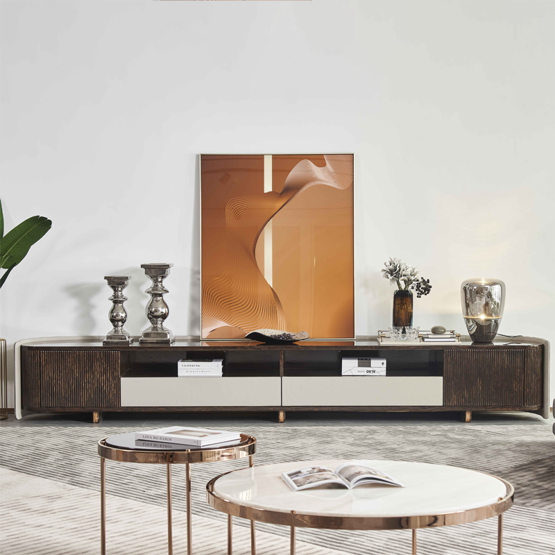 萃集KTV075电视柜咖啡色实木柜子木柜地柜现代轻奢风格