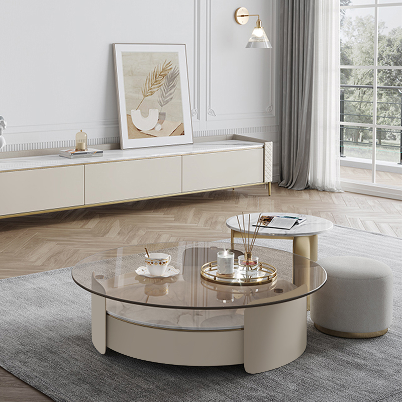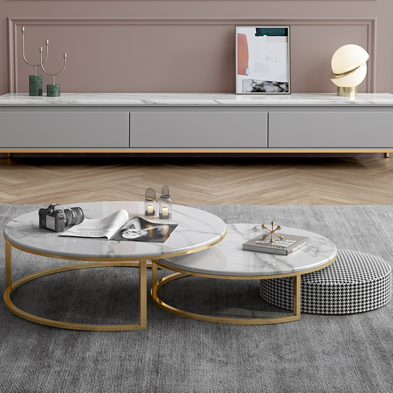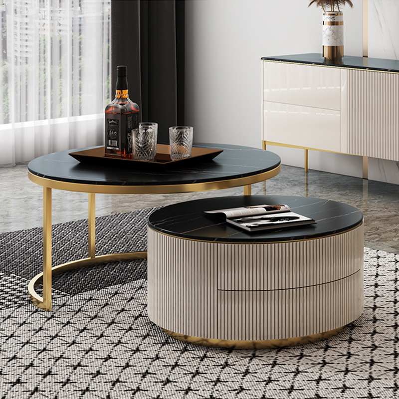 彩家居MYD-BT12A-BS轻奢岩板茶几组合现代客厅圆形桌子简约家用