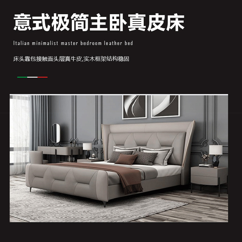 彩家居MYA-ML033-MD大床1.5/1.8m框架款/气动高箱款(皮款)意式极简主卧真皮床