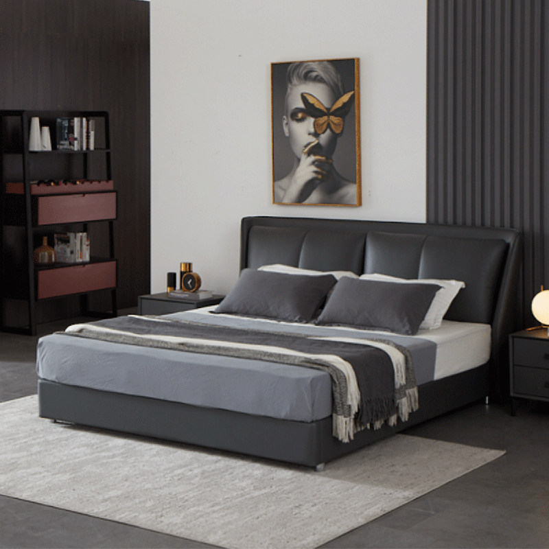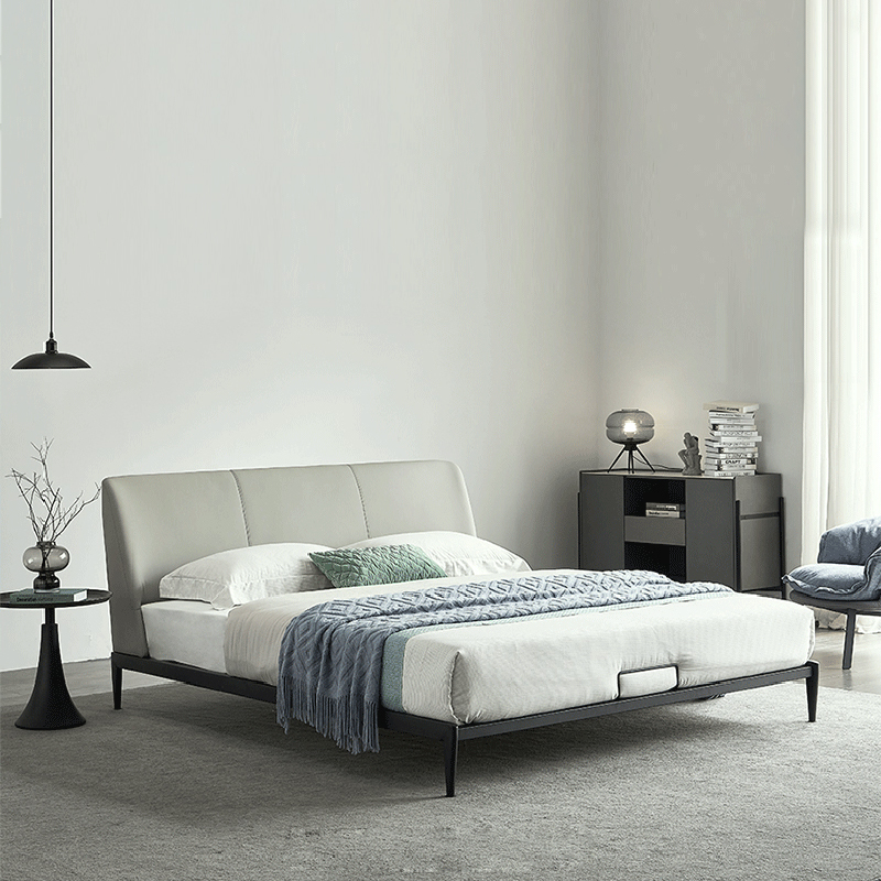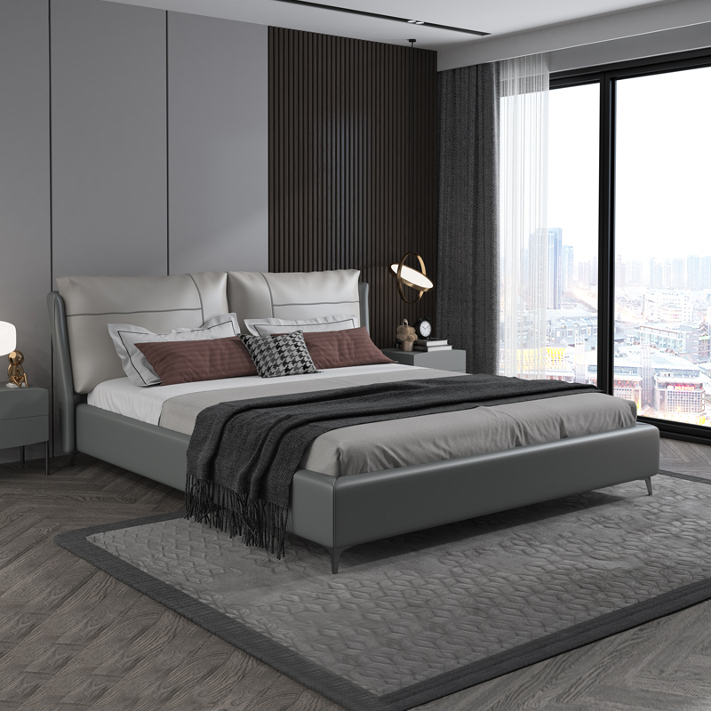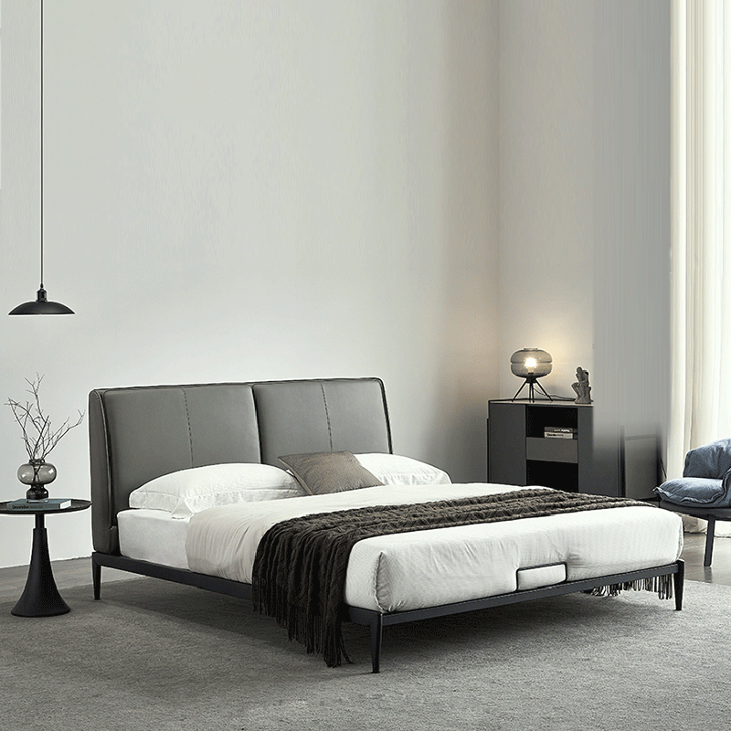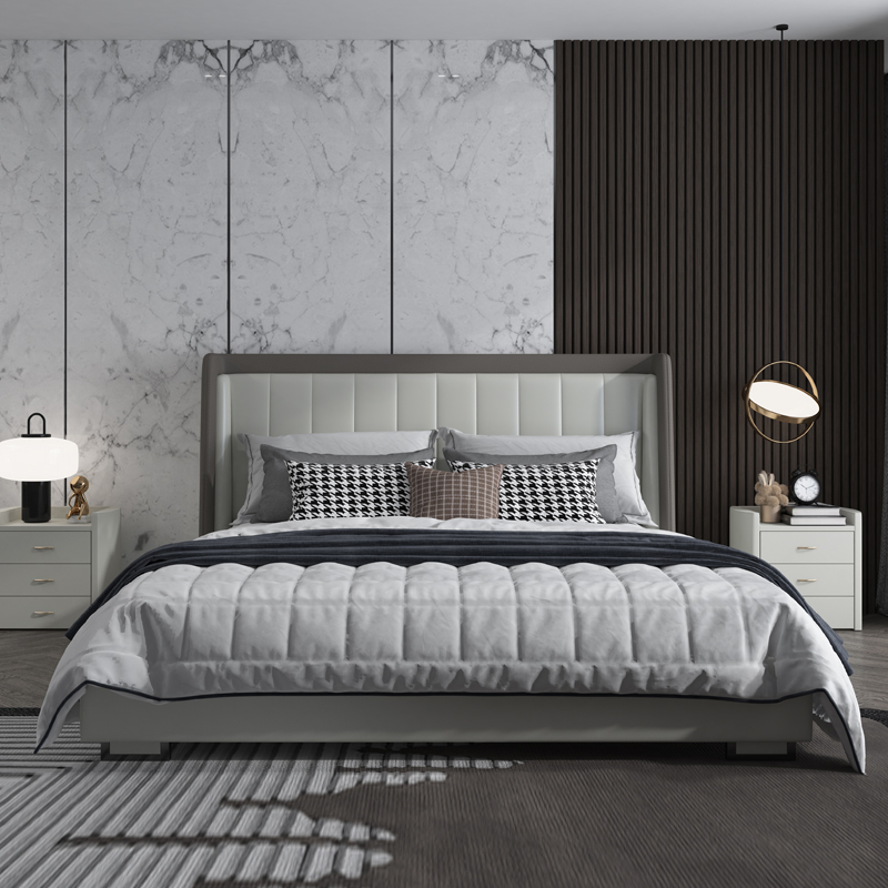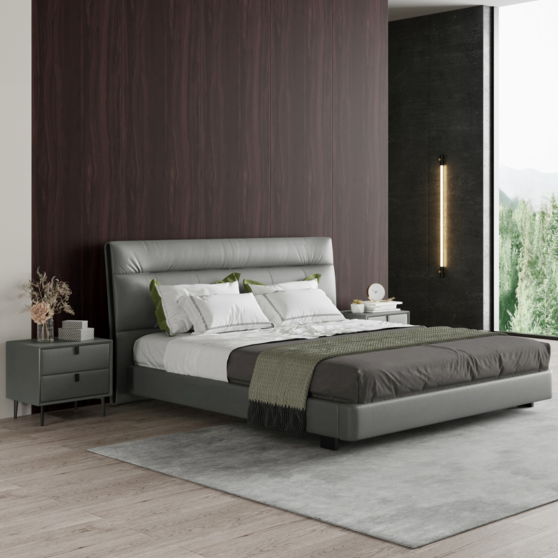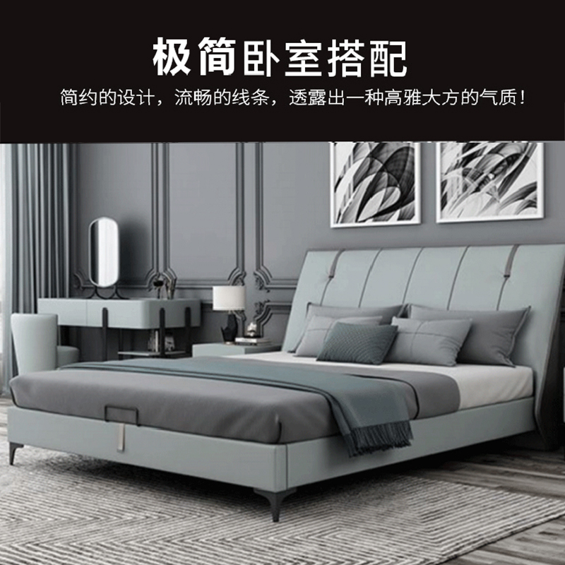 彩家居MYA-022-MD大床1.5/1.8m框架款/气动高箱款(皮款)意式极简主卧真皮床