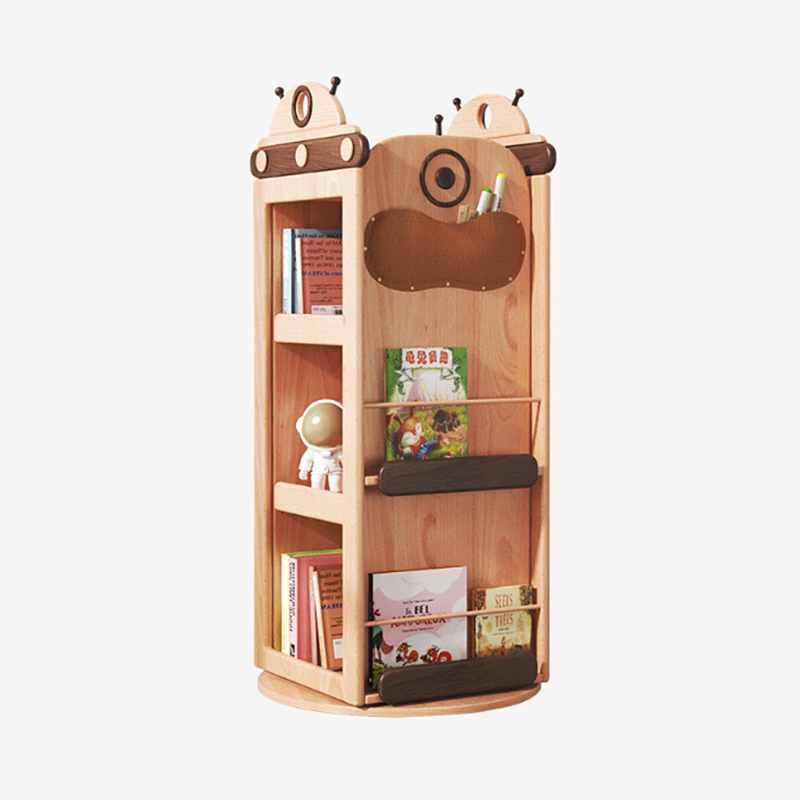 儿童实木书柜收纳柜一体落地储物格子简易书架旋转置物柜
