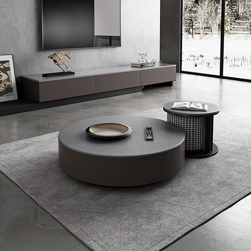 茶几电视柜意式岩板圆形茶几现代简约小户型北欧大理石可伸缩电视柜组合